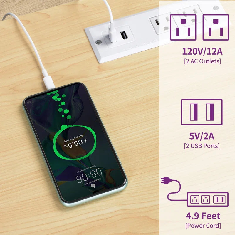 - Convenient Charging Station: Built-in 2 AC outlets, 2 USB ports with 2-metre power cord