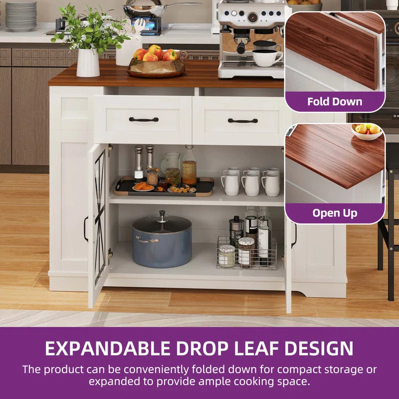 - Foldable Drop Leaf: Doubles as a dining table, breakfast bar, or extended prep area.