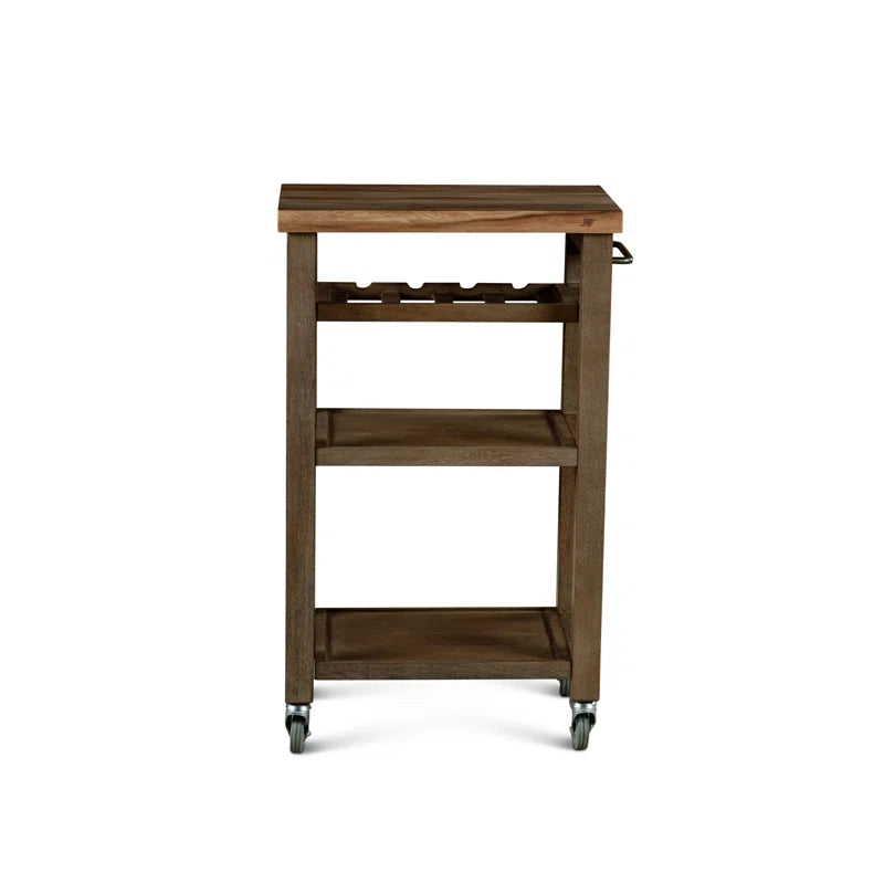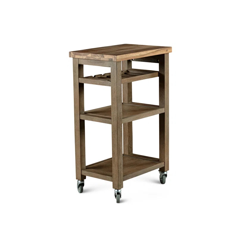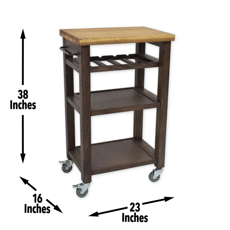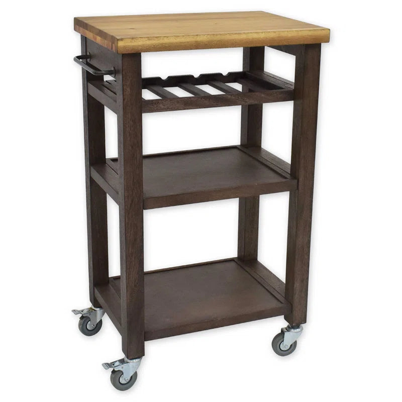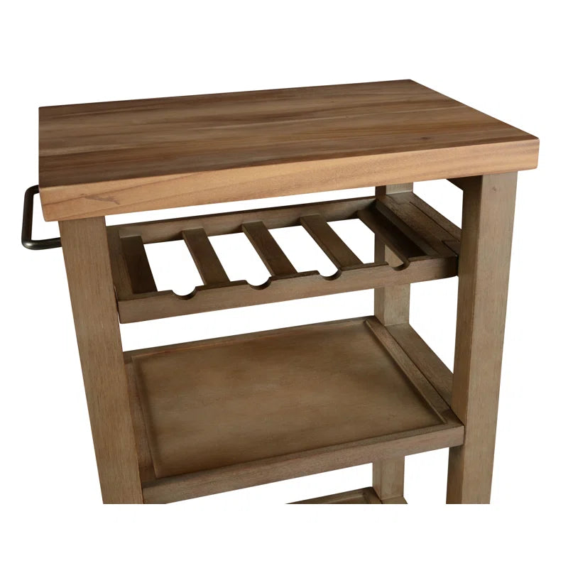 Kitchen Island Table: Solid Acacia Wood Cart with Wine Rack & Towel Holder