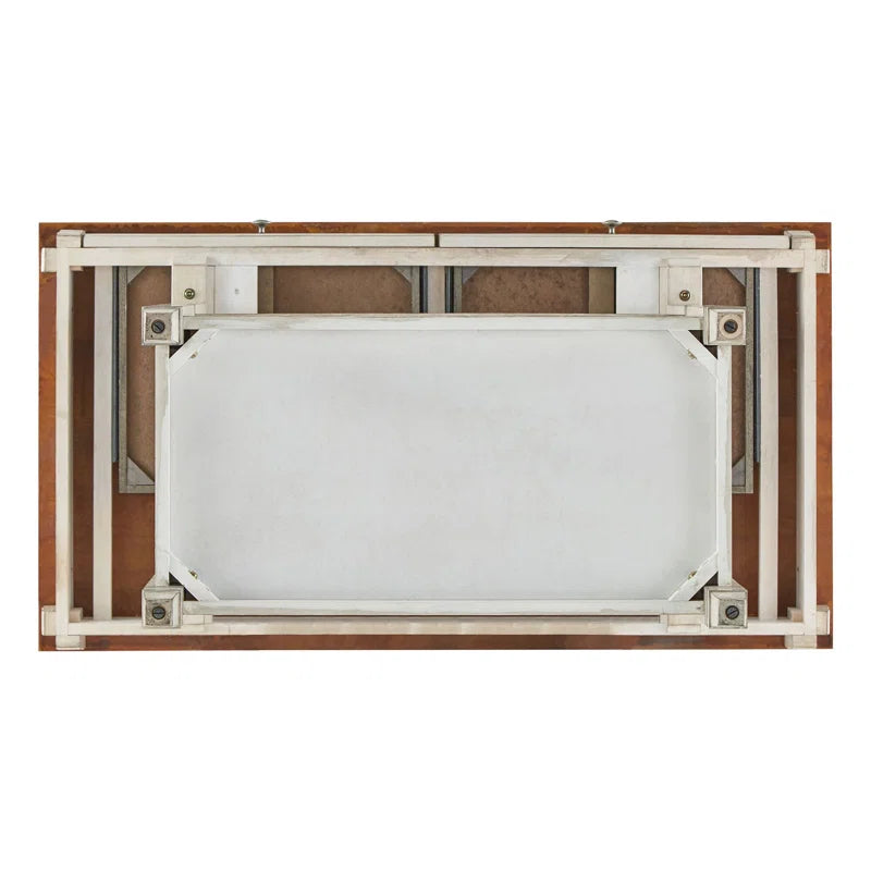 • Purposeful distressing, including wood scoring and rub-through, adds to the table’s charm.