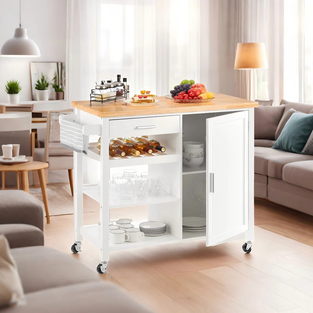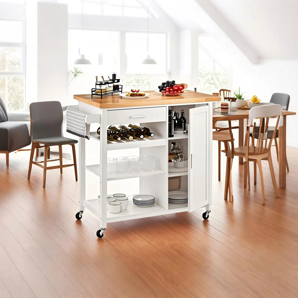 Kitchen Island Table with Drawer, Cabinet & Open Shelves – 41” wide Rolling Cart
