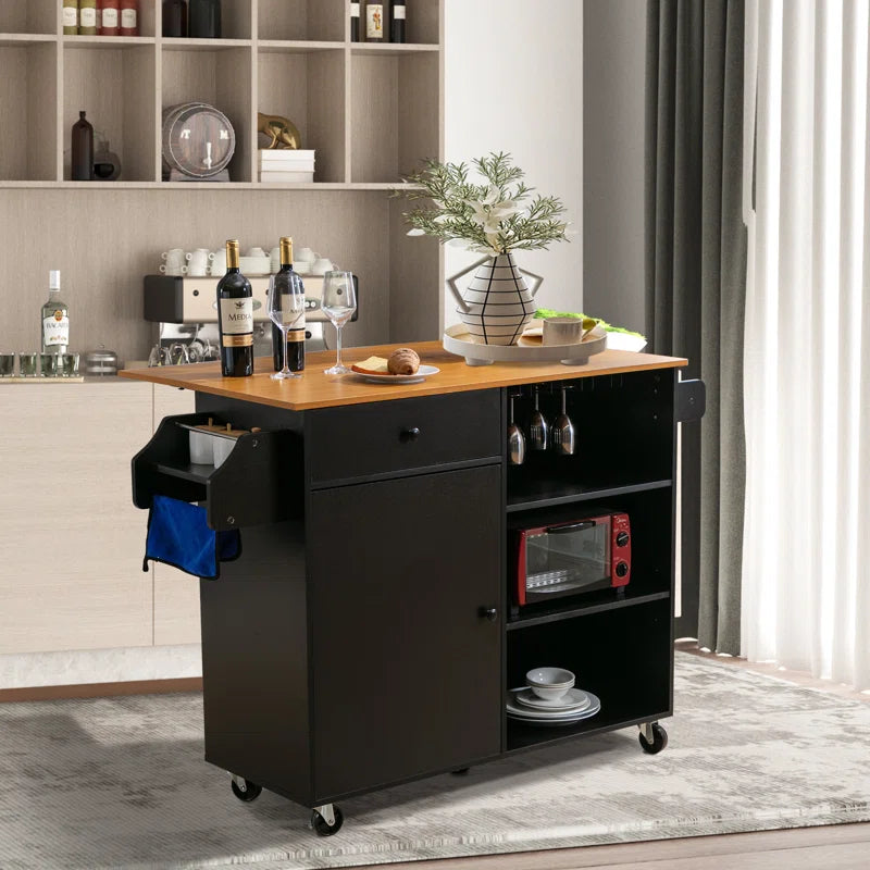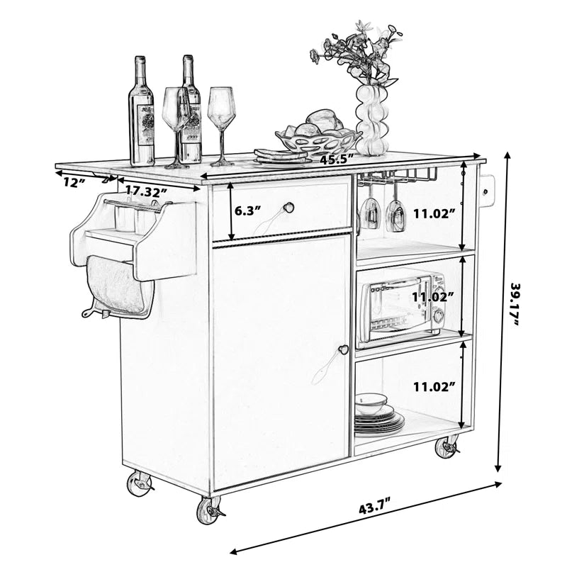 Kitchen Island Table with Drop Leaf, Drawers, Cabinet & Wheels – 43.7 Inch with Ample Storage