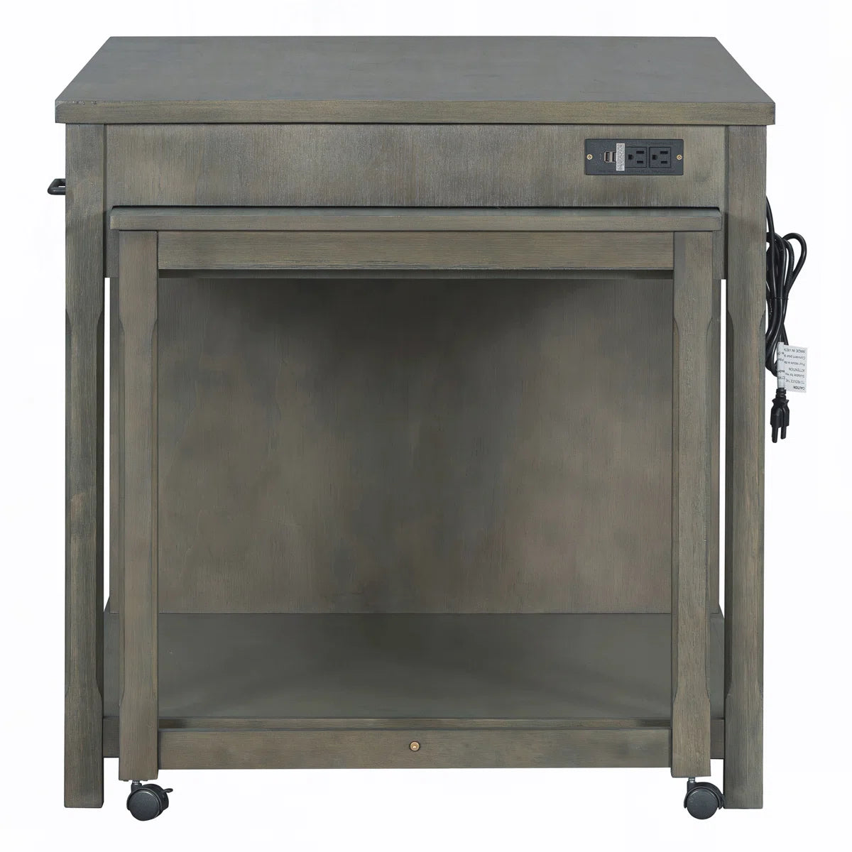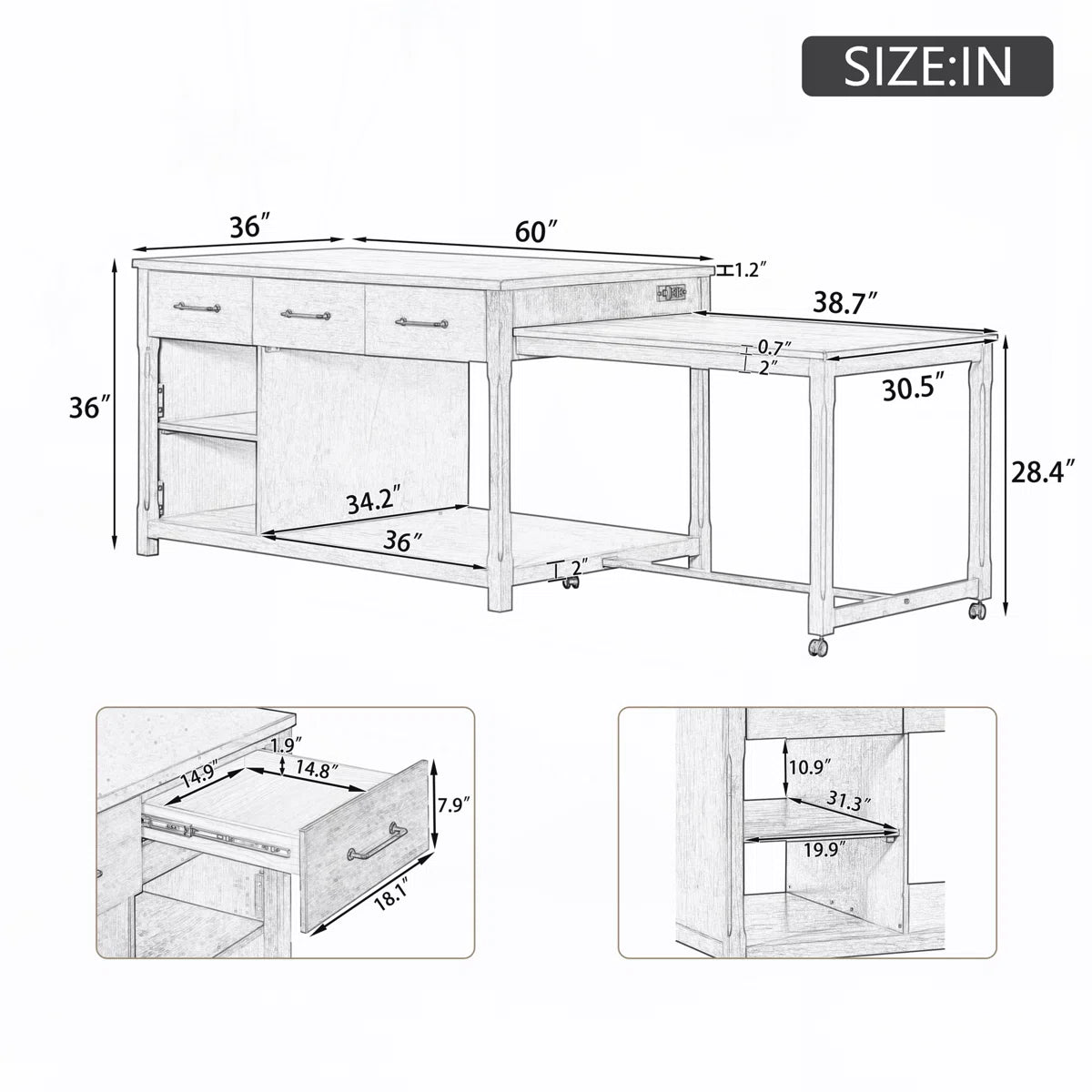 Kitchen Island Table with Expandable Countertop, Power Outlets & Storage – Retro Style for Modern Homes