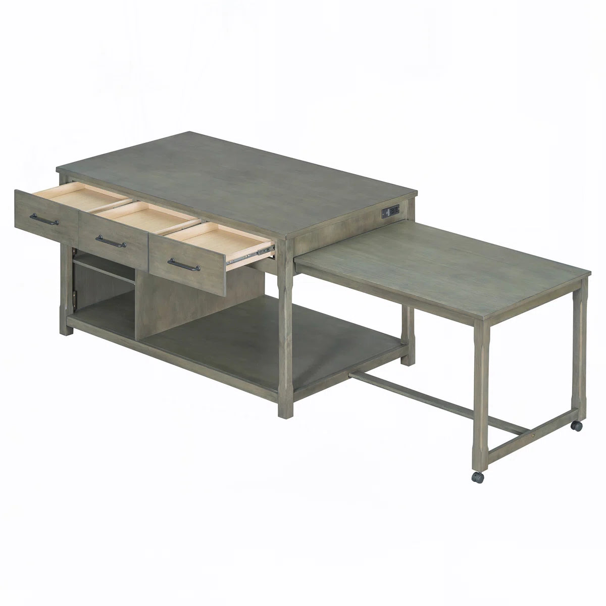 Add vintage charm and modern utility to your kitchen with this stunning retro-style kitchen island. Crafted in rich espresso + natural wood or grey tones, it features spacious drawers, open shelves, a hidden pull-out extension countertop, and integrated power outlets with USB ports. Whether you're prepping, serving, or working from home, this island is a stylish and practical centrepiece for any kitchen.