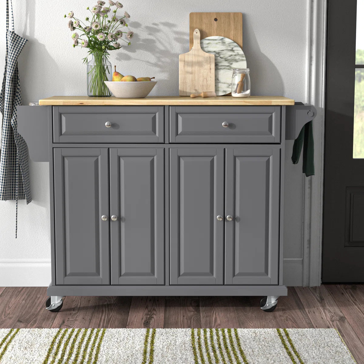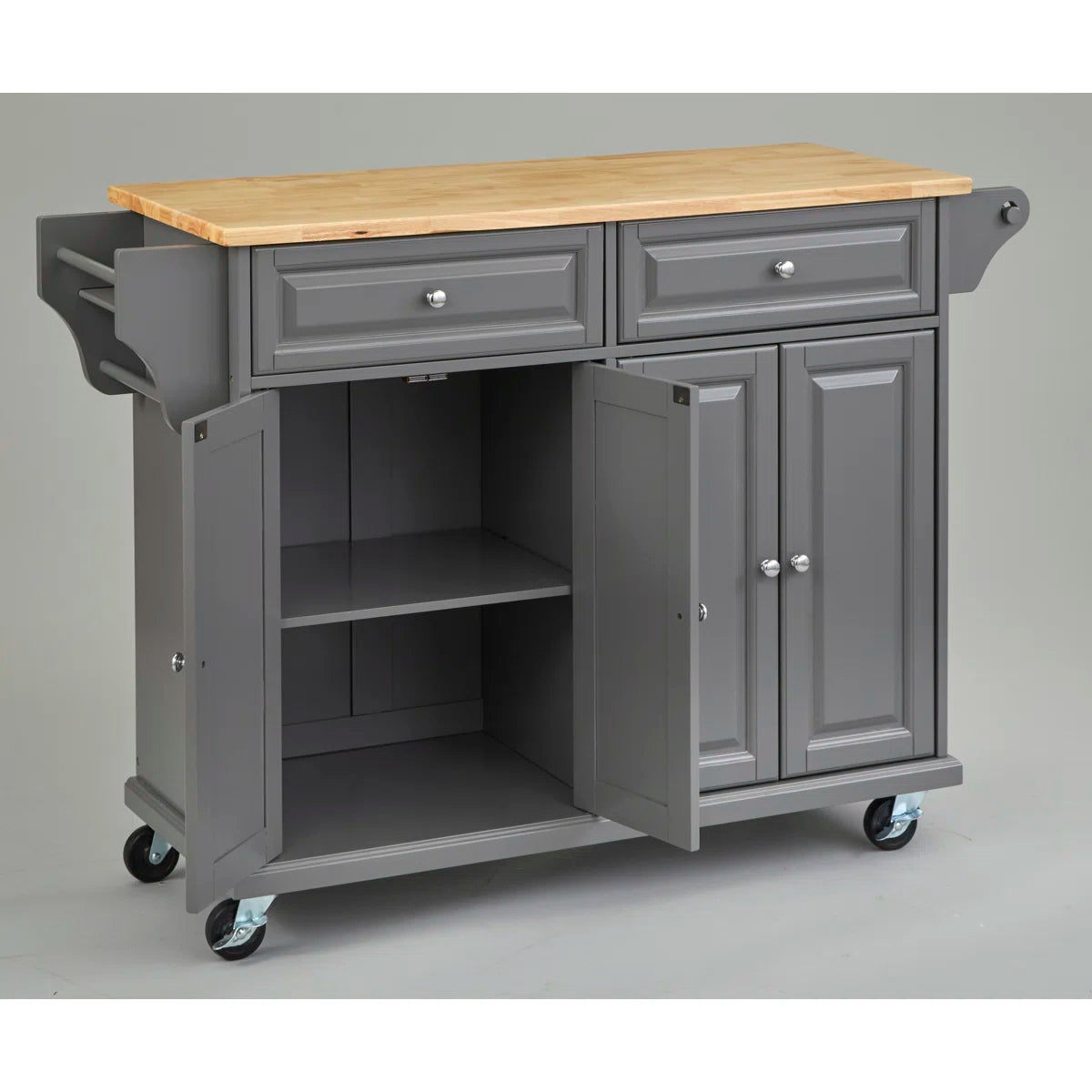 Kitchen Island Table with Solid Wood Countertop, Storage Cabinets & Casters – 52-Inch Classic Design