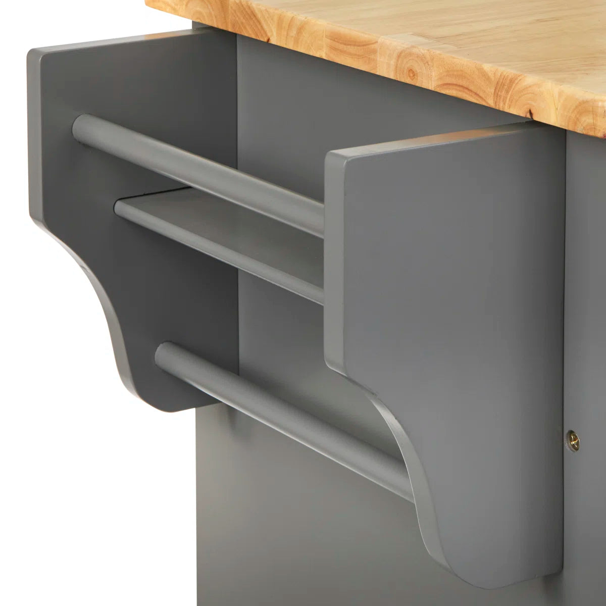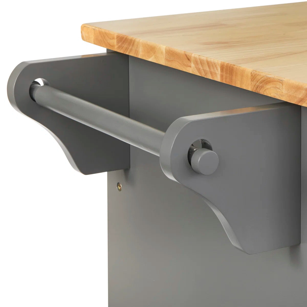 Bring charm and utility to your kitchen with this kitchen island table, crafted with a solid wood top and a spacious engineered wood body. With dual drawers, four-door cabinets, and adjustable shelves, this piece ensures everything has its place. The built-in towel and spice racks add everyday convenience. Equipped with removable casters, it easily adapts to your kitchen’s needs while supporting up to 36.28 kg of weight.