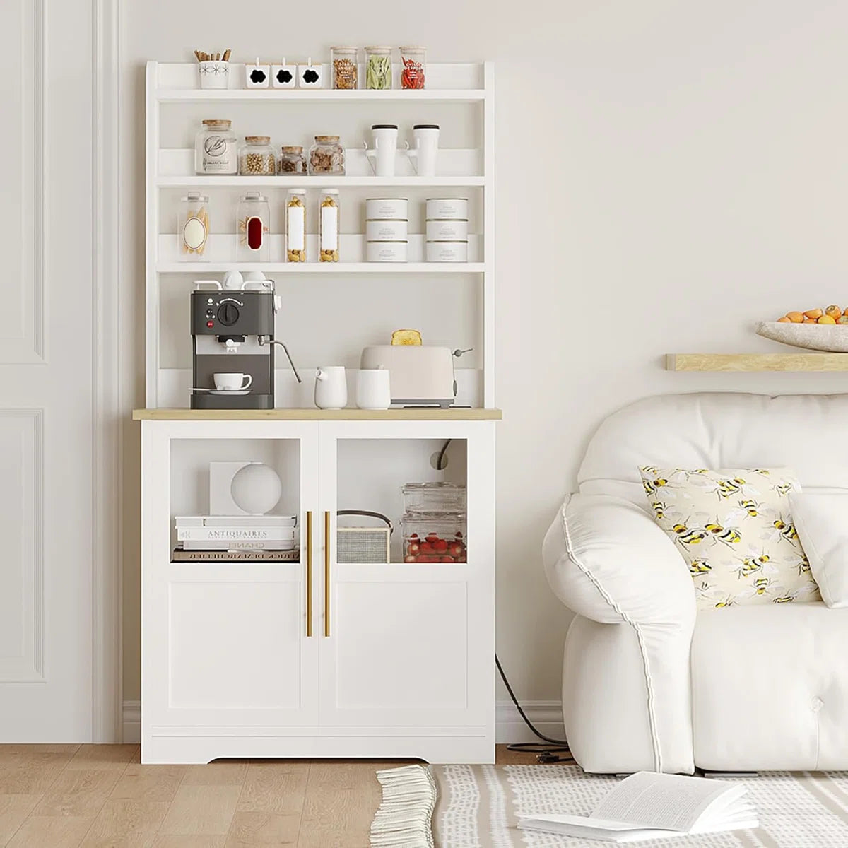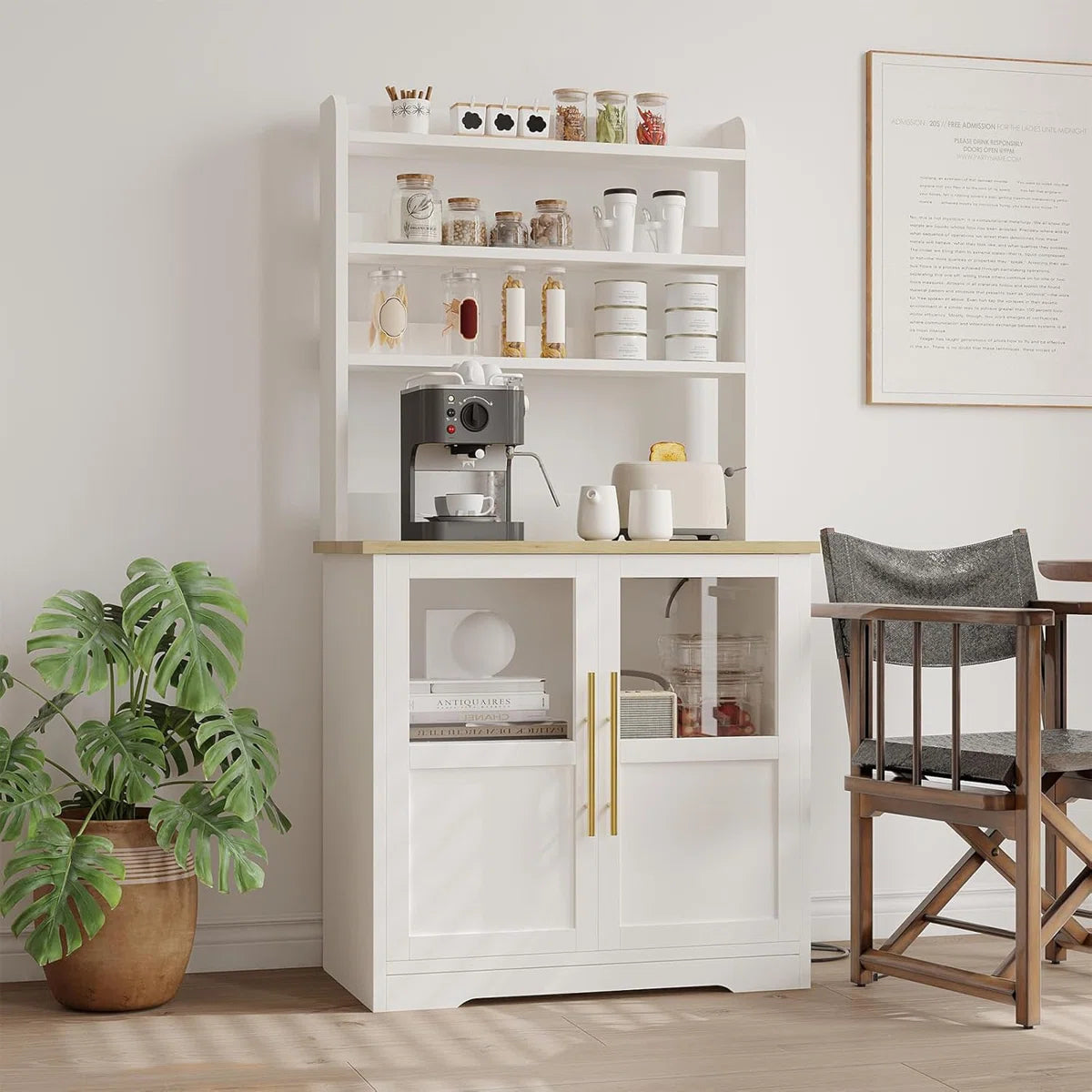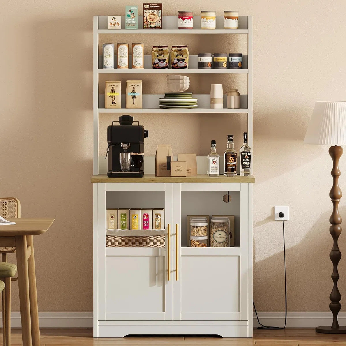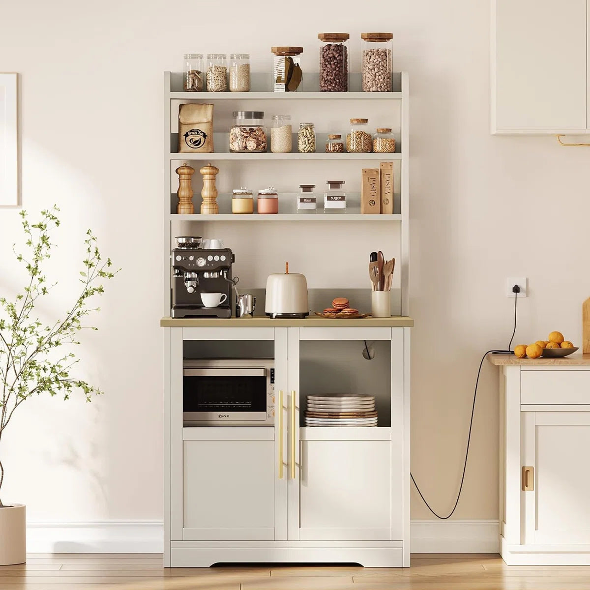 Kitchen Rack: 30.7" Bakers Rack with 2 Glass Doors, Power Outlet Farmhouse Bakers Rack and Kitchen Bakers Rack Cabinet with Large Storage
