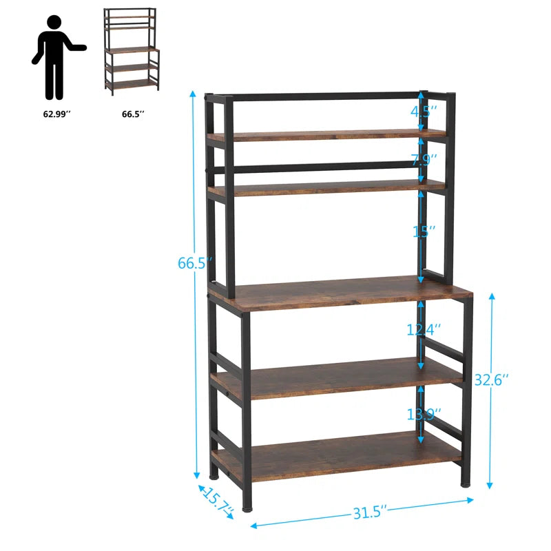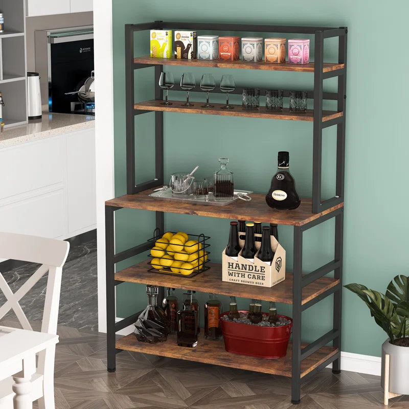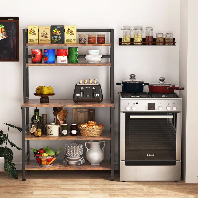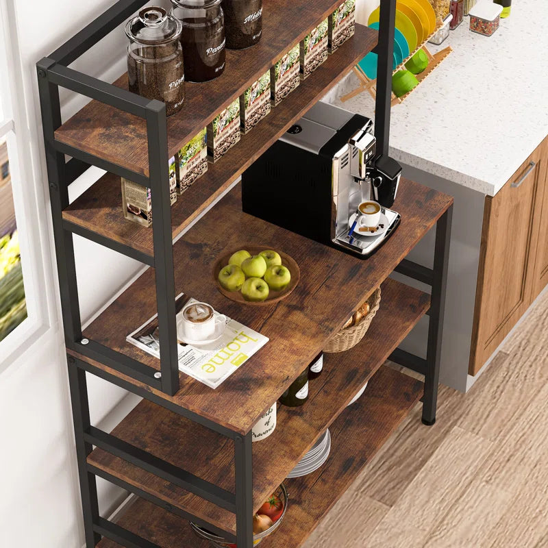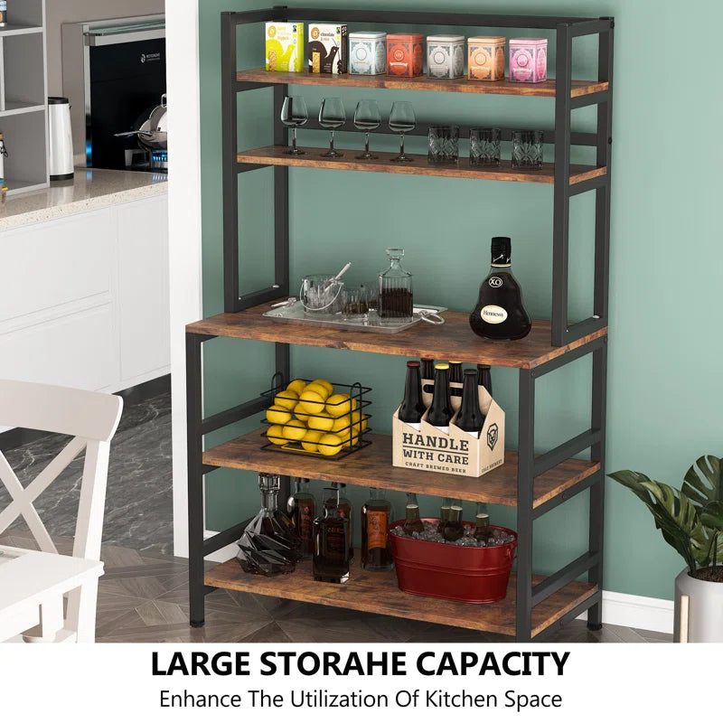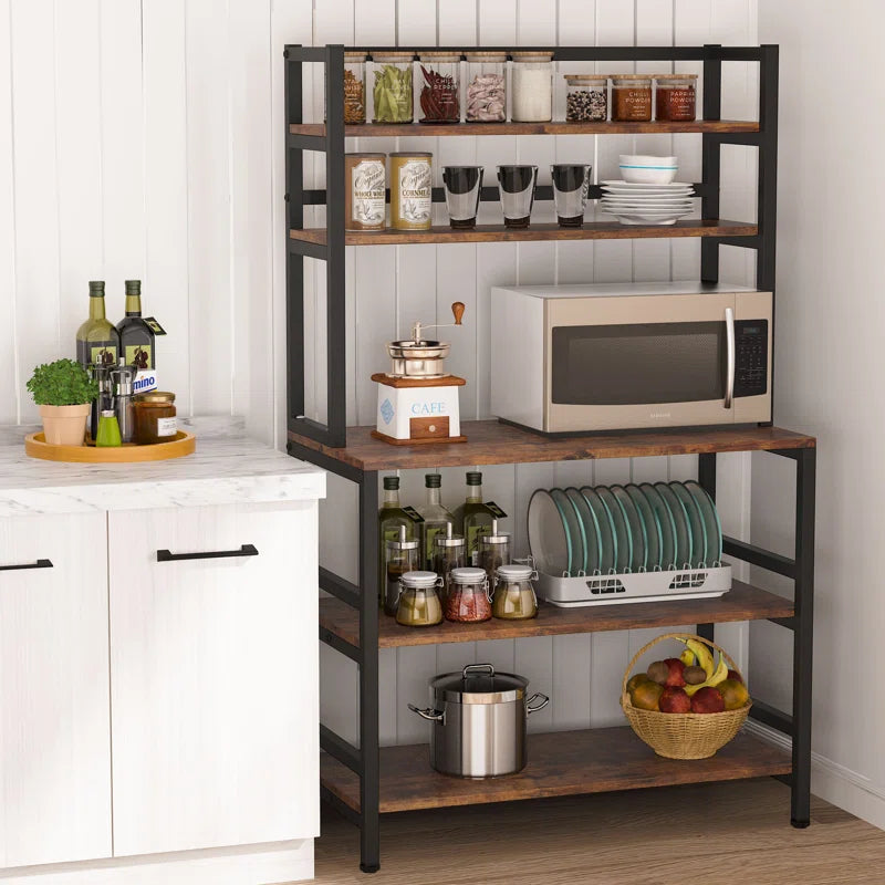 The 17-stories 5-tier Bakers Rack with Hutch, Freestanding Kitchen Utility Cart Storage Shelf Organizer, Industrial Microwave Oven Stand, It may be used as a microwave stand, a spice rack organizer, a baker's rack, a kitchen workstation shelf, and a kitchen storage shelf. It also blends in well with other rustic room furnishings.
