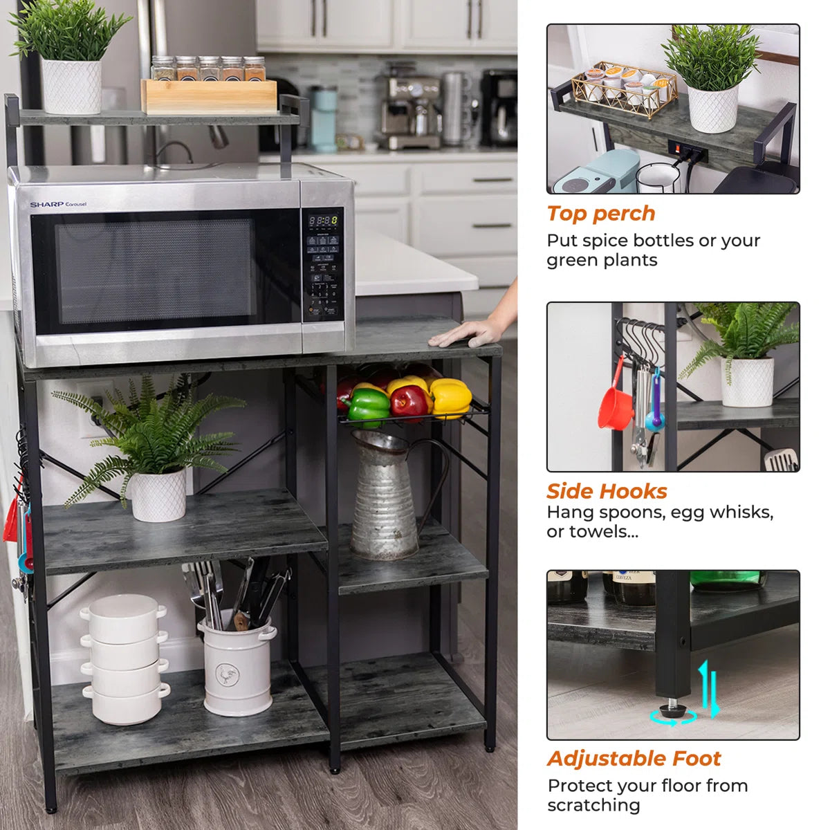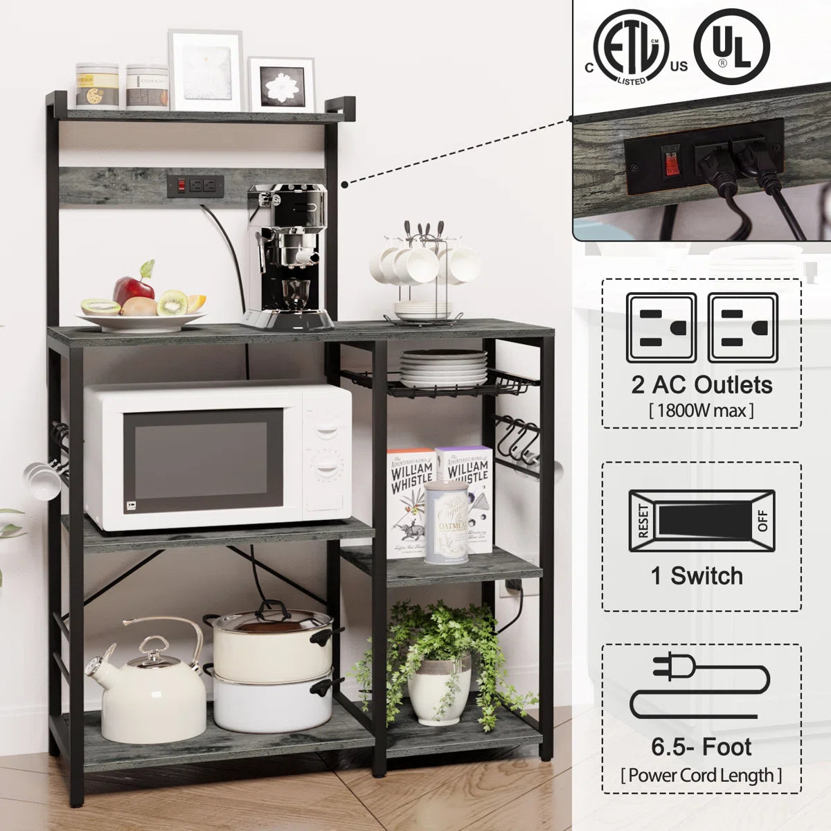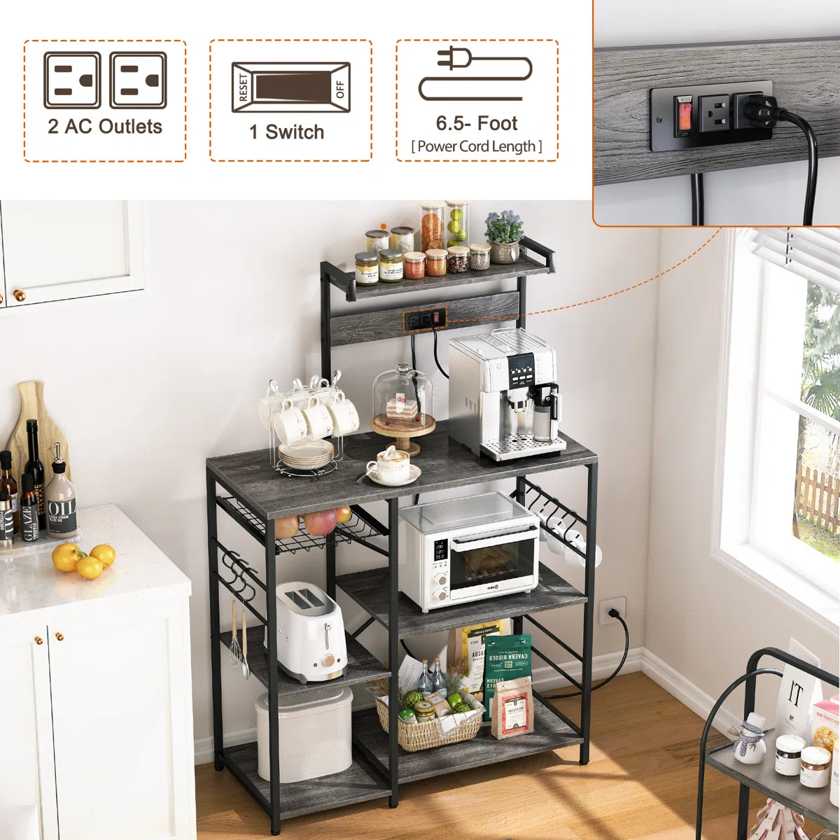 Kitchen Rack: 35.4" Bakers Rack with Power Outlet, Coffee Bar with Microwave Stand and Wire Basket