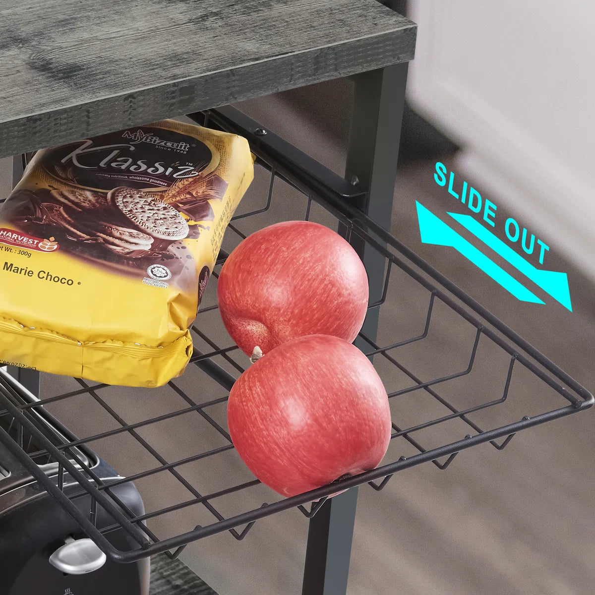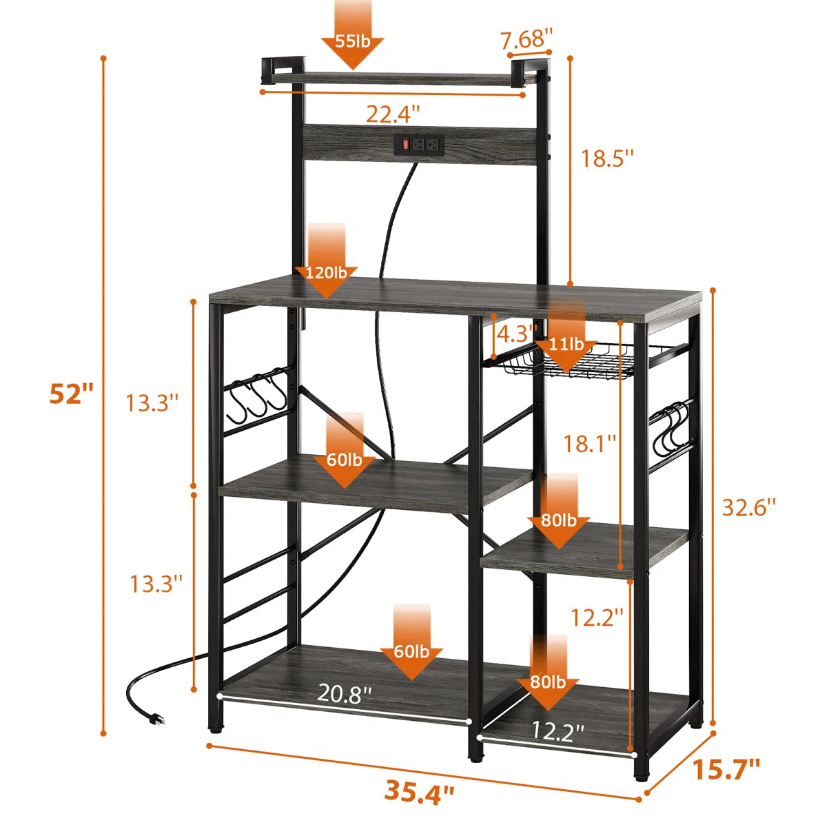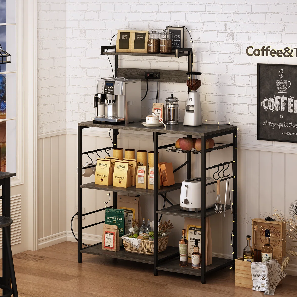 Kitchen Rack: 35.4" Bakers Rack with Power Outlet, Coffee Bar with Microwave Stand and Wire Basket