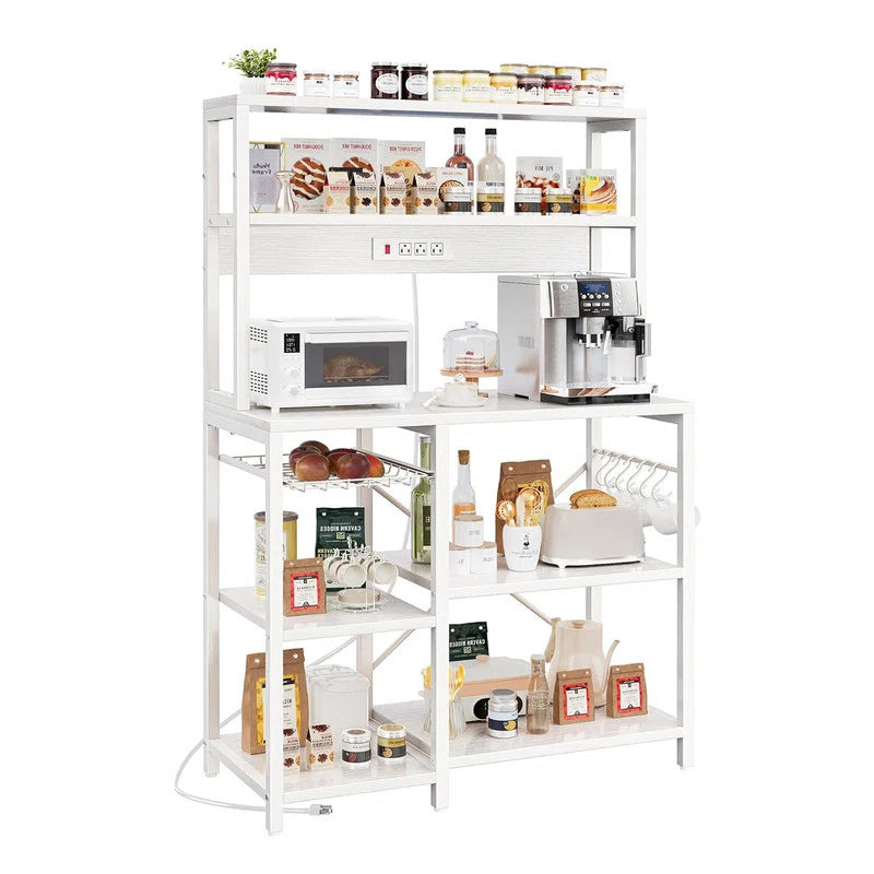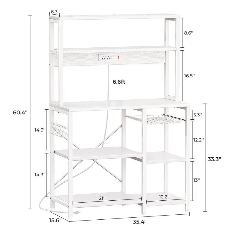 Kitchen Rack: 35.4'' Coffee Bar with Wire Basket, Kitchen Microwave Stand, and Baker's Rack with Power Outlet Features 3 AC Outlets and 1 On-Off Switch: The power strip... Read more
