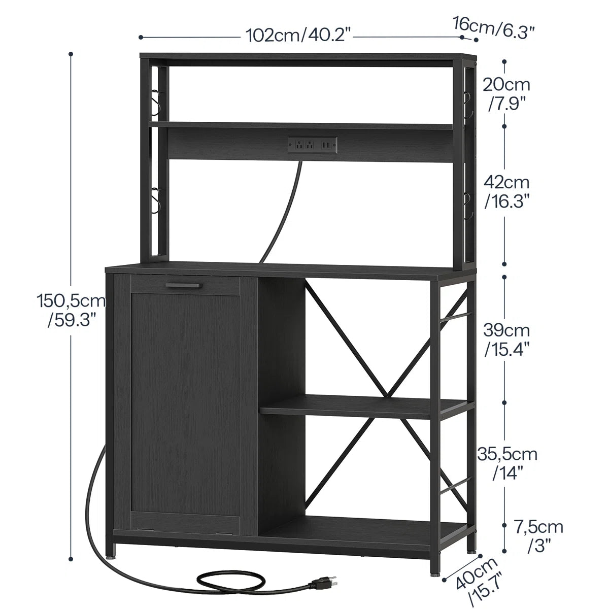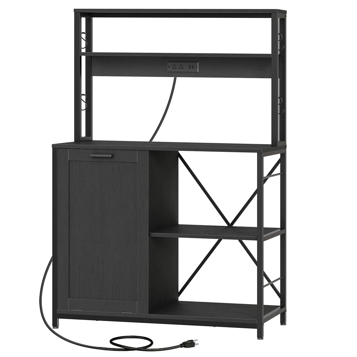 Kitchen Rack: 40.2" Baker's Rack with Trash Can Cabinet and Power Outlet