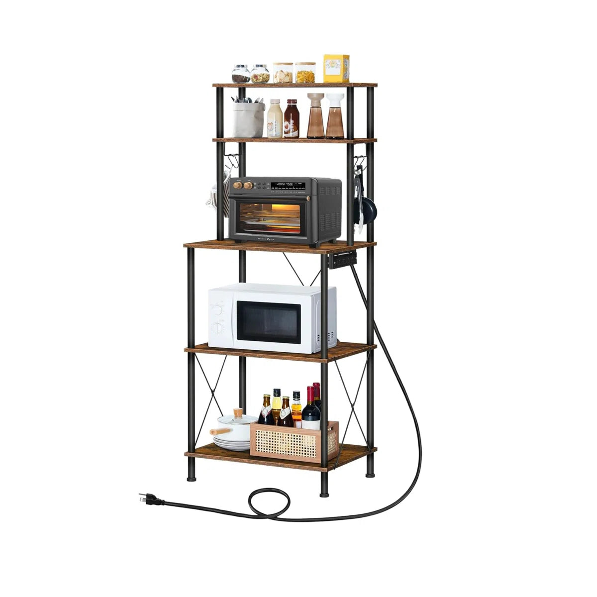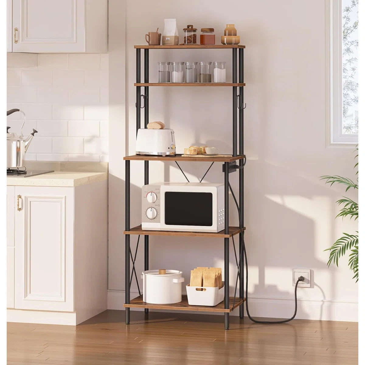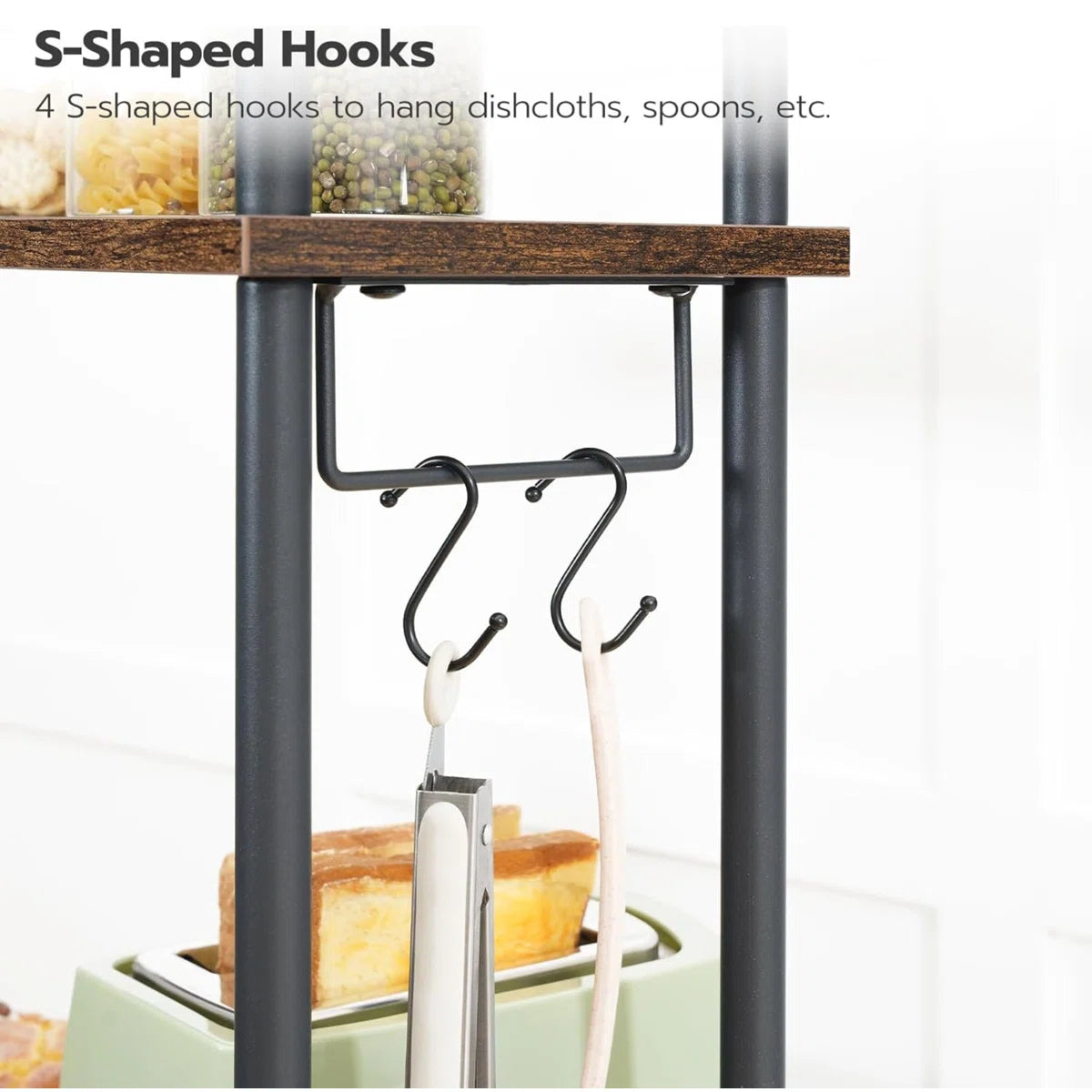 Kitchen Rack: 5-Tier Microwave Stand, Coffee Bar with S-Shaped Hooks