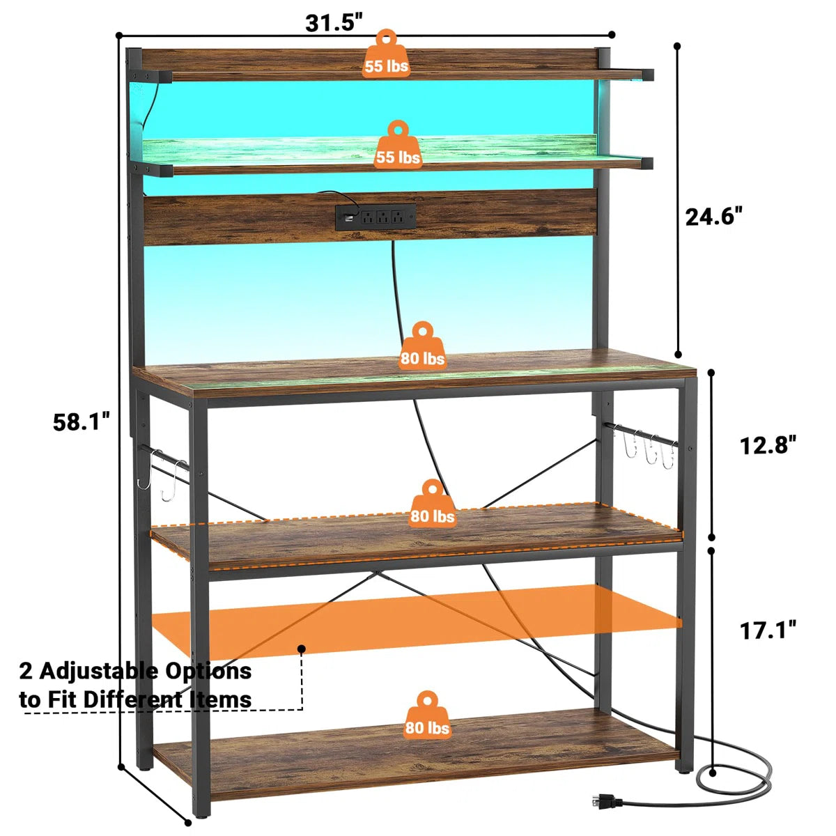 Kitchen Rack: 5 Tiers Coffee Bar Station with Led Lights Features Power outlets on the Baker's Rack: With 3 AC outlets + 2 USB charging ports, our kitchen... Read more