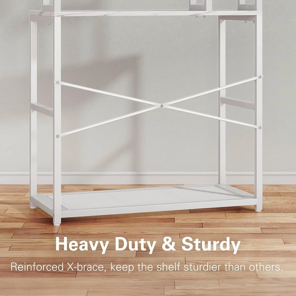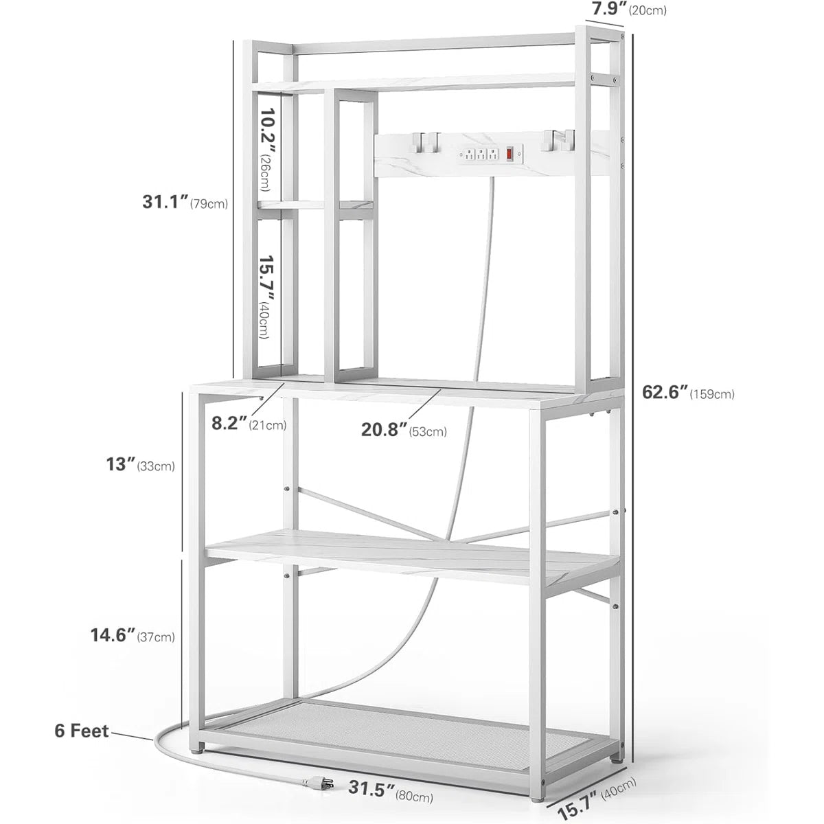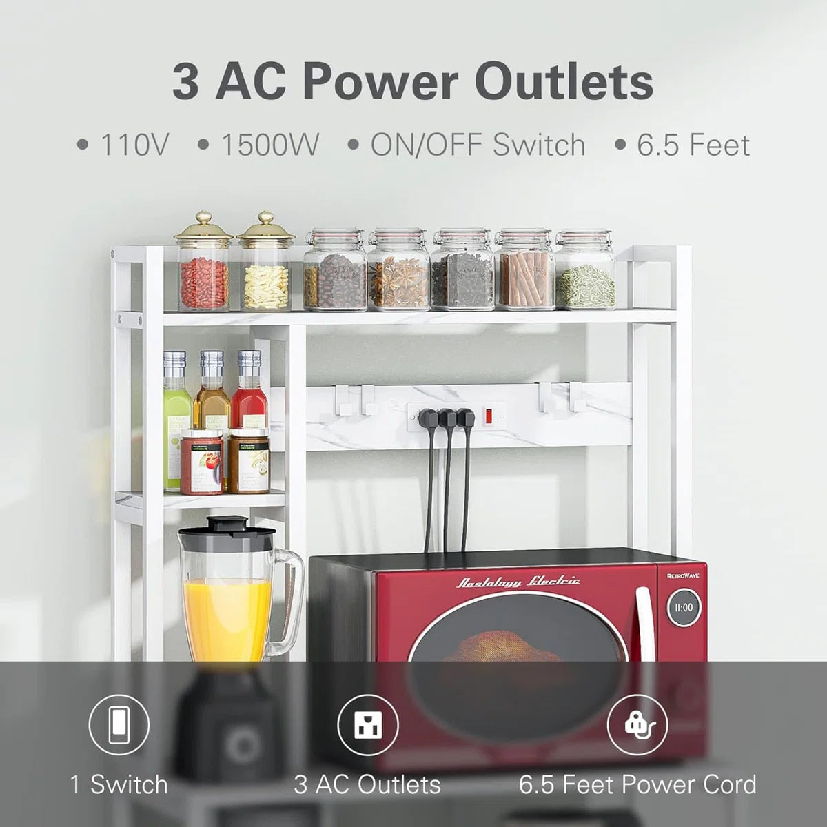 Kitchen Rack: 5 Tiers Microwave Stand with Storage, Heavy Duty Kitchen Shelves with Plugs, and 31.5 Inch Bakers Rack with 3 Power Outlets