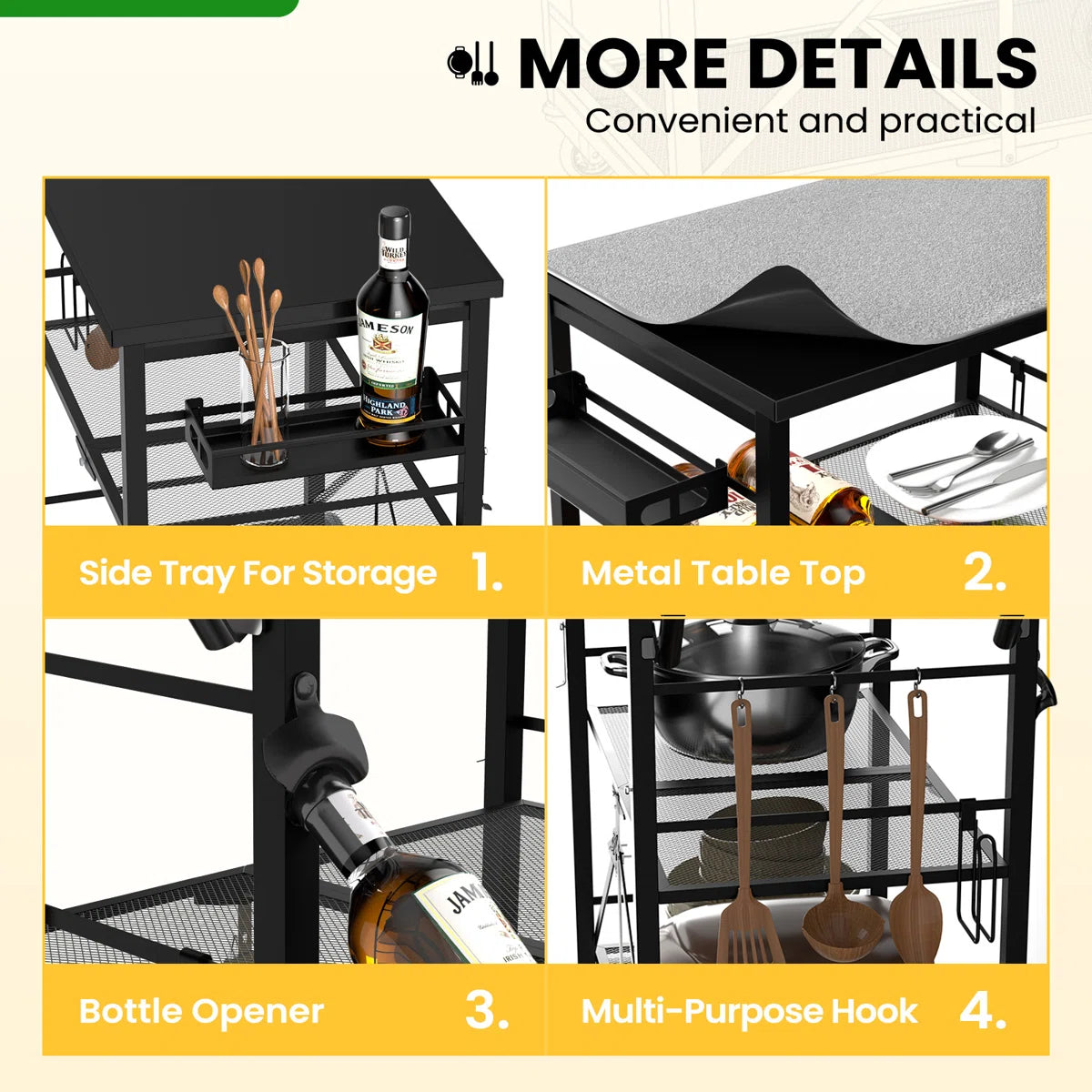 · Effortless Cleaning & Organized Storage: Maintenance is made easier by the creative mesh plate design, which keeps water and dust from building up. To keep your outdoor kitchen neat and orderly, side hooks offer convenient storage for utensils like spatulas and tongs.