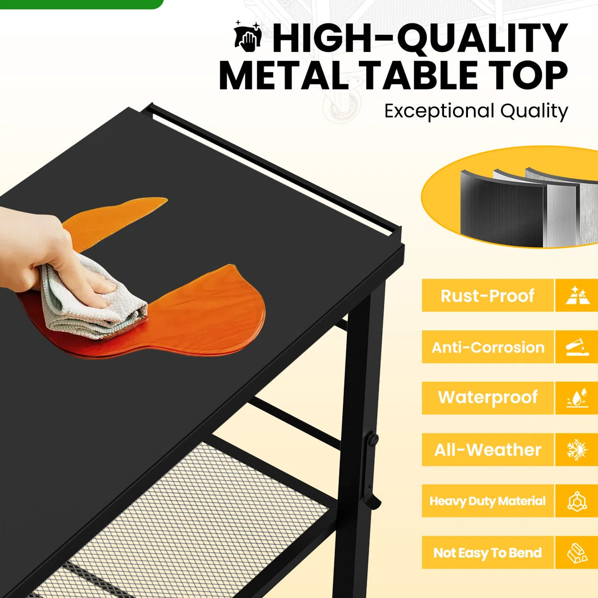 · Sturdy Design for Tough Tasks: Its anti-corrosion coated body and stainless steel top make it ideal for holding a griddle, portable grill, pizza oven, or pizza oven accessories. Along with a surface that is easy to clean, it offers plenty of space for serving areas, kitchen use, and outdoor cooking.