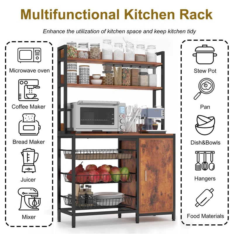 Kitchen Rack: Microwave Shelf Rack and Kitchen Bakers Rack with 3 Metal Baskets and Storage Cabinet