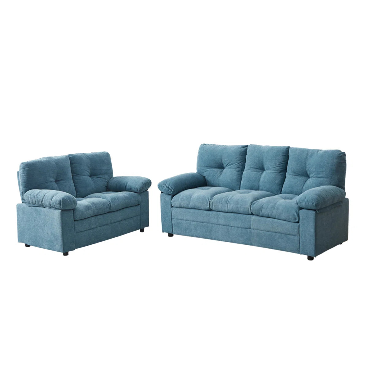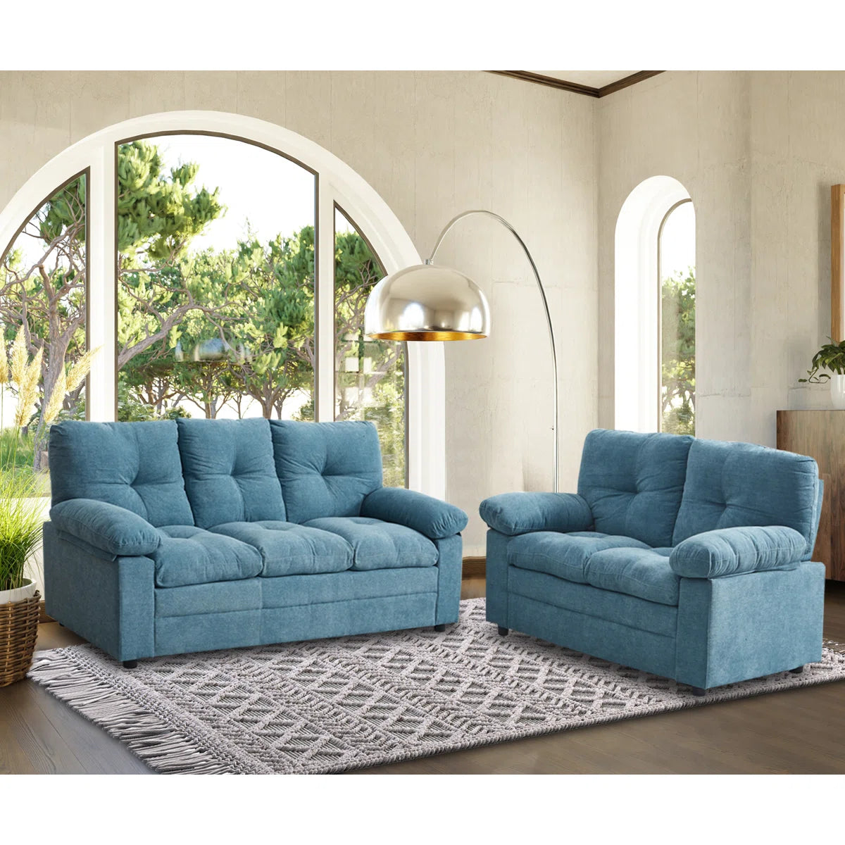 Luxury Sofa Sets: 2-Piece Classic Cotton Upholstery Sofa & Loveseat Set with Pillowtop Arms