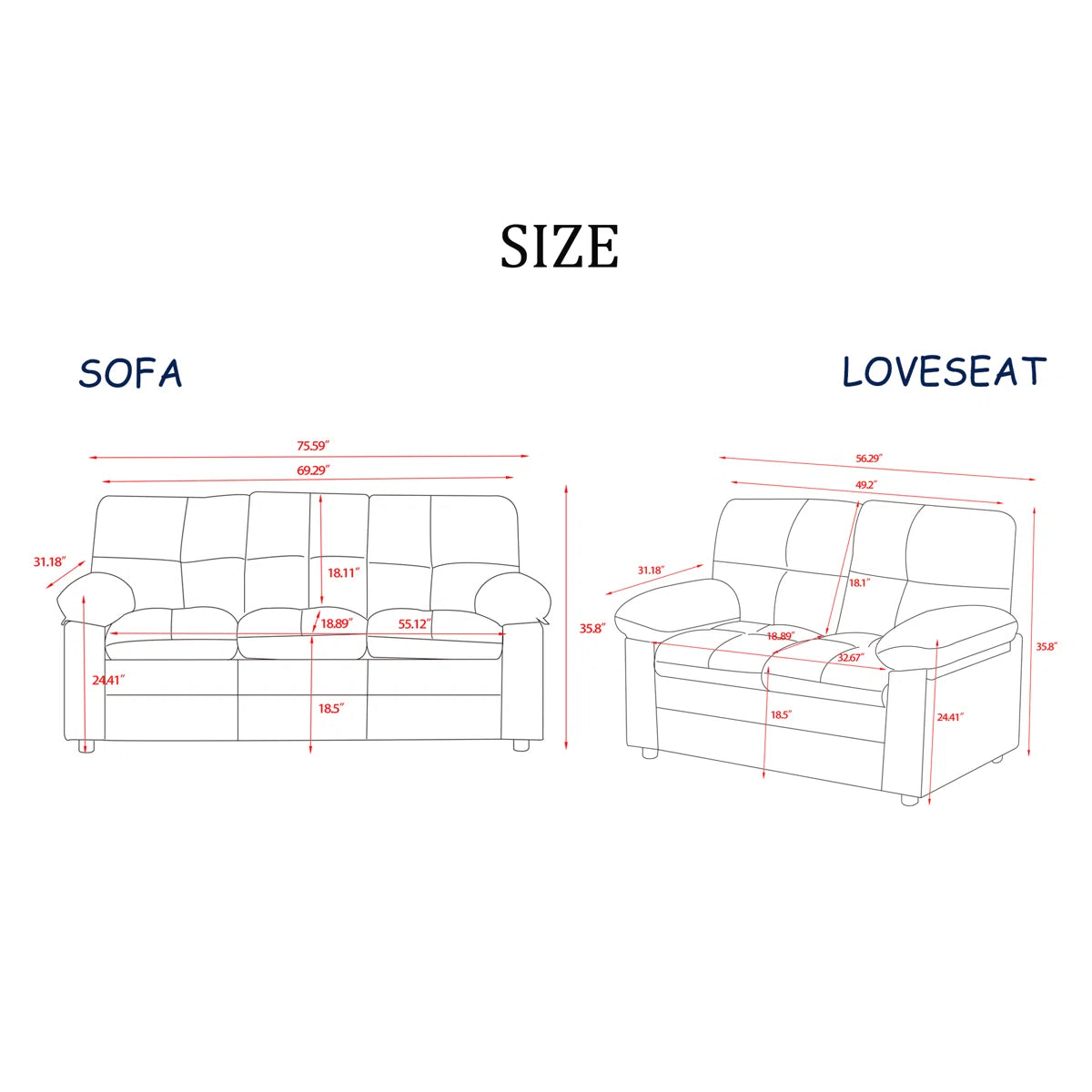 This living room set blends clean, classic style with modern comfort, perfect for both traditional and contemporary interiors. With plush high-density foam cushions and pillowtop armrests, this 2-piece sofa and loveseat set offers superior relaxation. Wrapped in ultra-soft cotton fabric and supported by a durable wooden frame, it ensures lasting performance. Ideal for compact spaces, apartments, or bedrooms, this set assembles in under 30 minutes with no special tools required.