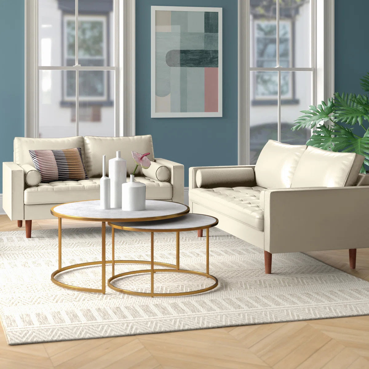 Elevate your living space with this sleek and modern 2-piece seating arrangement from Meirxifeng furniture design. This set includes a sofa and loveseat perched on stylish tapered feet, featuring square arms, tufted cushions, and piped seams. Upholstered in foam-filled faux leather, it offers both contemporary charm and everyday comfort. Perfect for Indian homes looking for a chic upgrade without compromising on practicality.