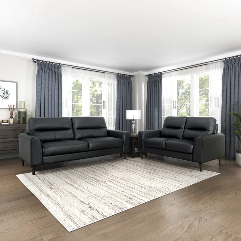 Luxury Sofa Sets: 2-Piece Modern Leather Match Sofa & Loveseat Set with Solid Wood Legs