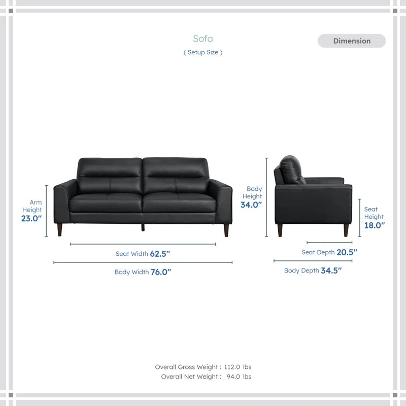 • Sofa: 34'' H x 76'' W x 34.5'' D