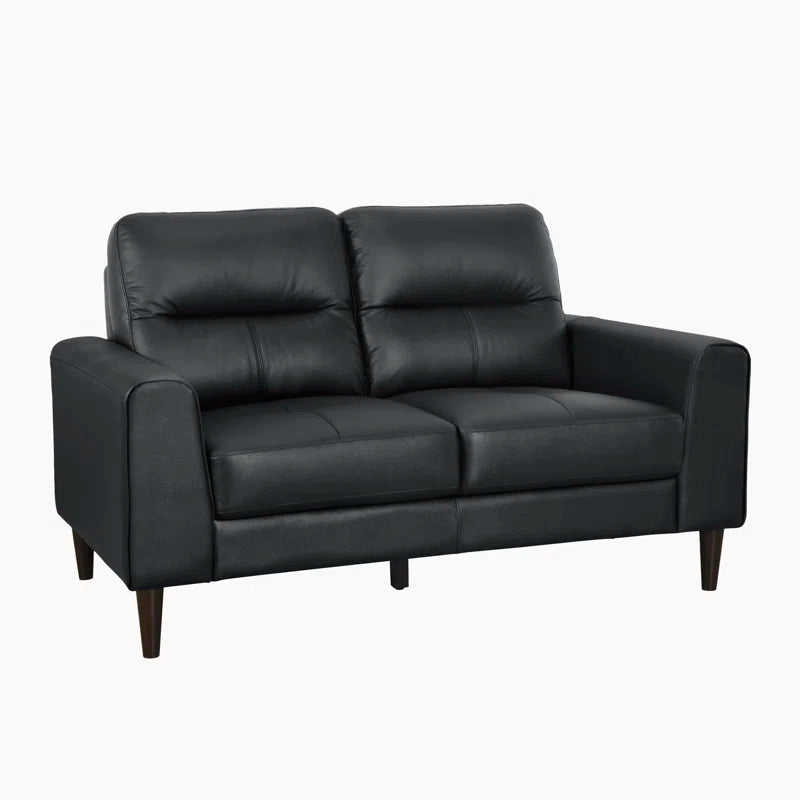 Add a blend of timeless charm and modern appeal to your home with the Timeo Collection. This 2-piece living room set features a sofa and loveseat made with 100% top-grain leather in contact areas and durable faux leather elsewhere. Designed with square arms, ergonomic seating, and solid wood legs, this set promises comfort and elegance. A perfect fit for modern Indian homes seeking premium style with vintage undertones.