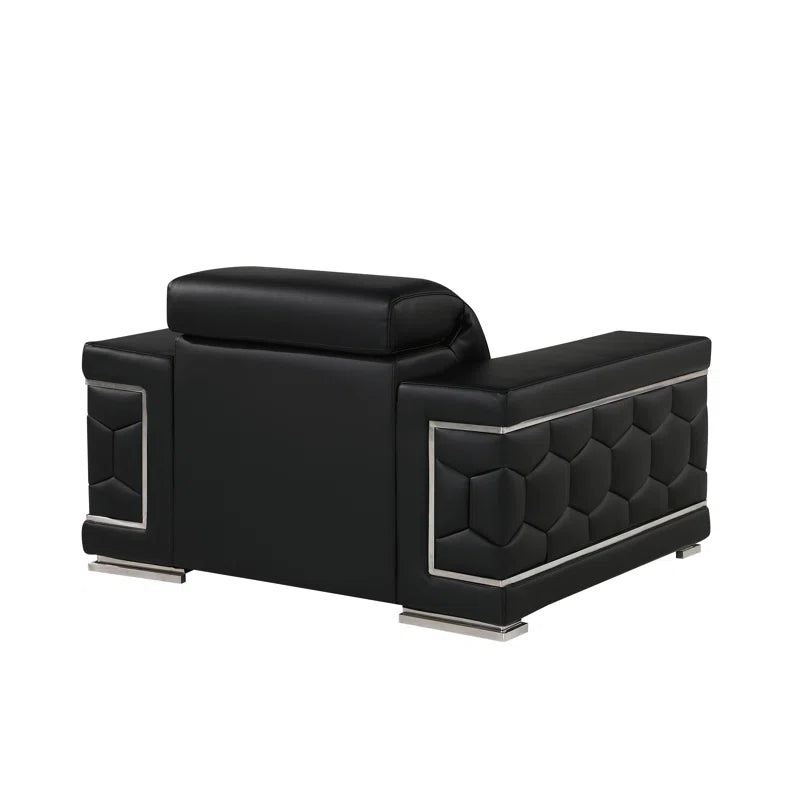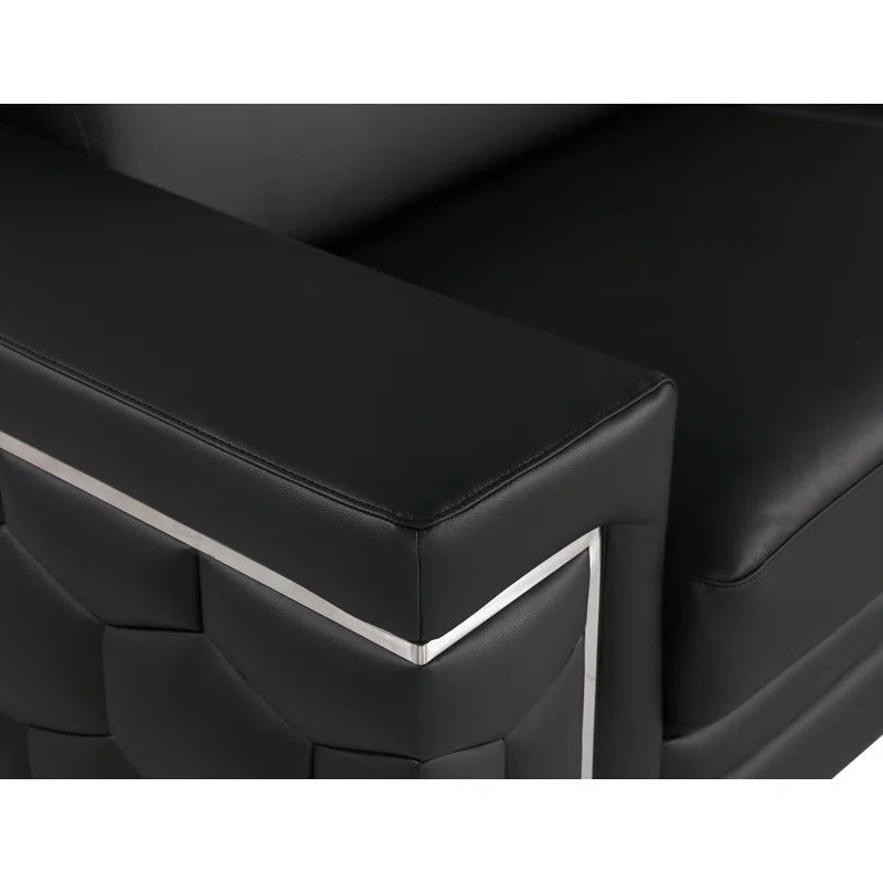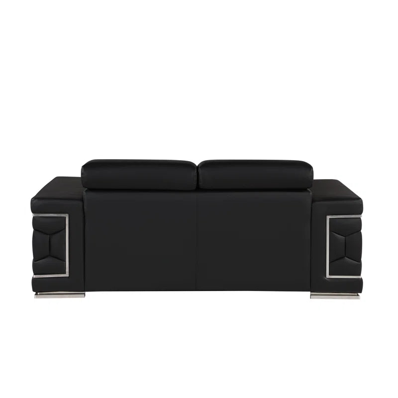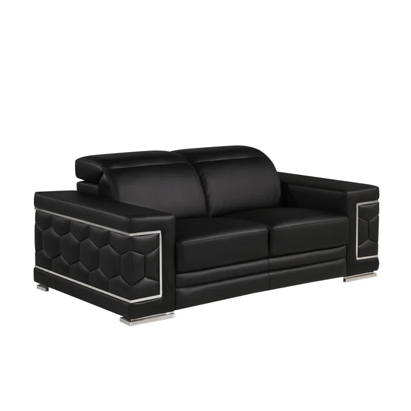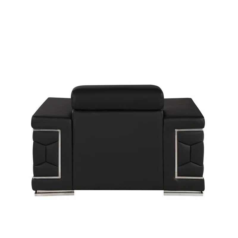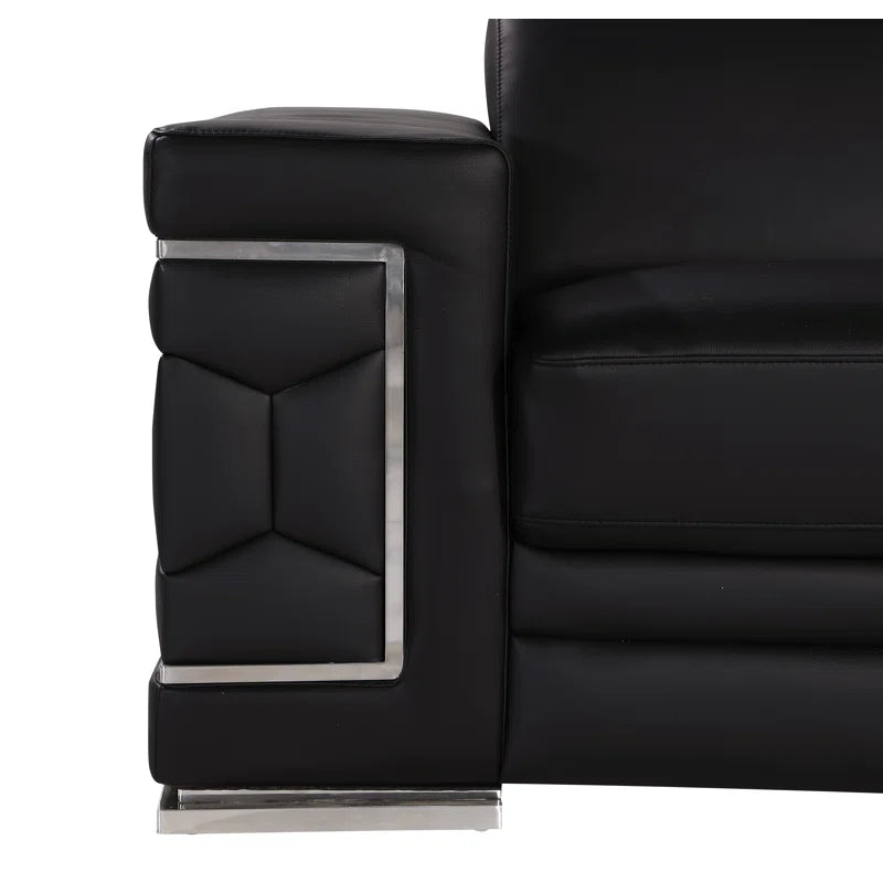 Bring elegance and comfort to your home with this 3-piece sofa set, featuring sleek Italian design and premium genuine leather upholstery. The set includes a sofa, loveseat, and chair—each crafted with kiln-dried hardwood frames and accented by stainless steel chrome legs. Square arms double as resting surfaces for added functionality, while high-density foam cushions ensure lasting support and comfort.