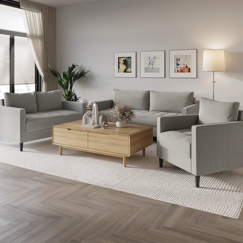 Luxury Sofa Sets: 3-Piece Linen Fabric Sofa Set with Chair, Loveseat & Sofa