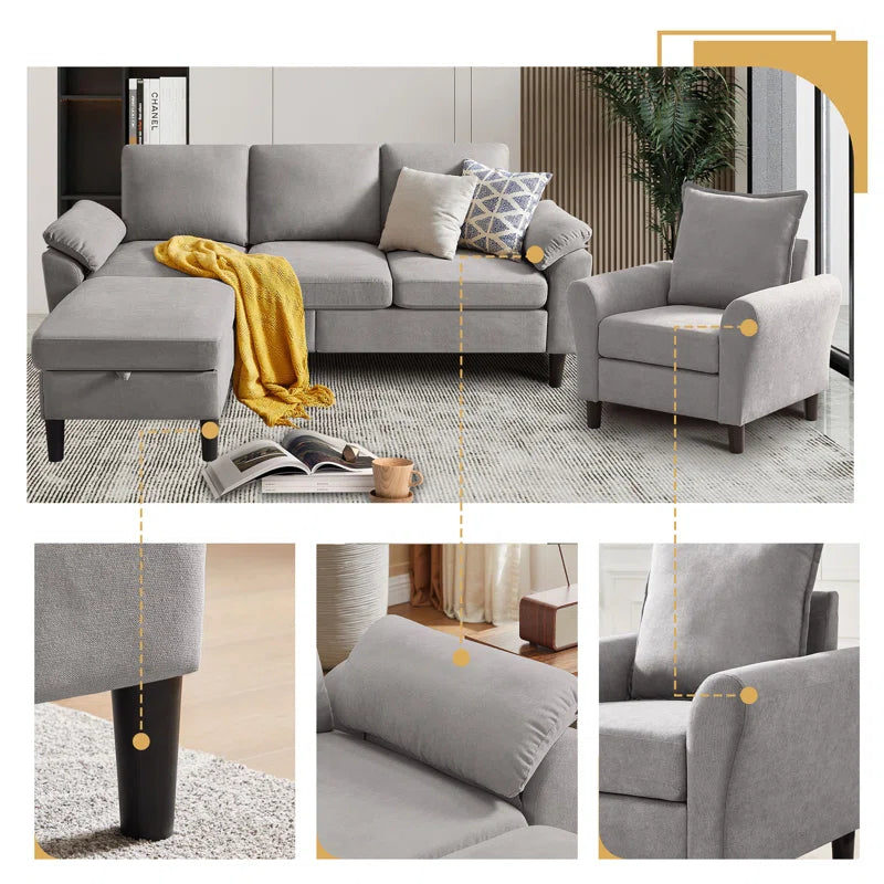 Luxury Sofa Sets: 3-Piece Modern Sectional Sofa Set– Washable Covers & Storage Pockets