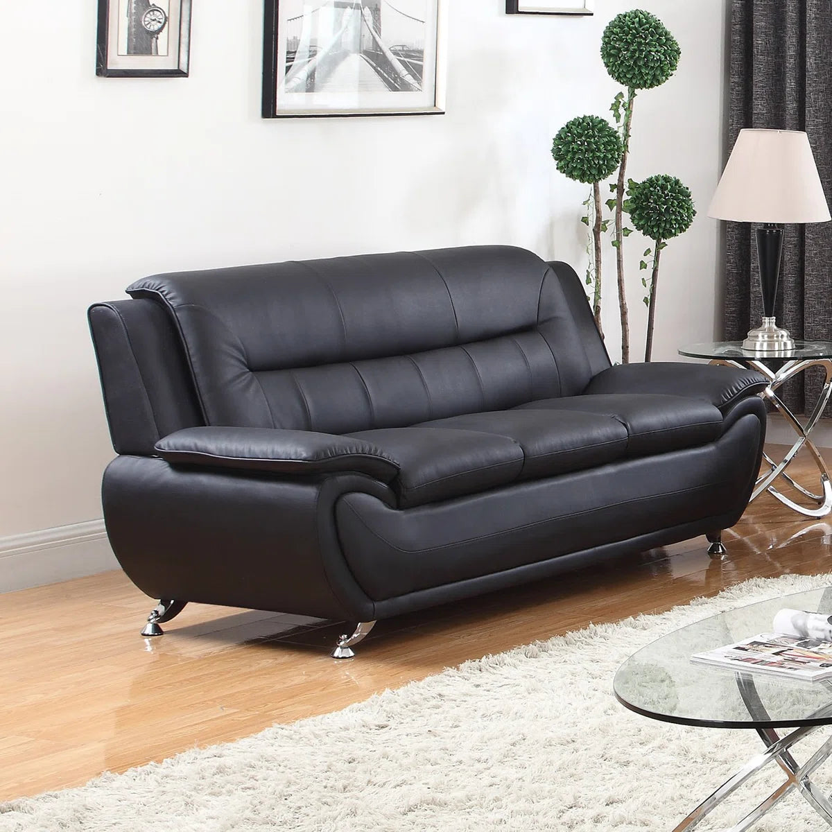 Add a touch of modern elegance to your living space with this Contemporary Living Room Set. Crafted with a sleek leatherette finish and chrome-plated legs, this set offers style, comfort, and durability. The foam-filled cushions and tight back design provide firm support, perfect for everyday lounging. An ideal choice for urban homes seeking minimal effort and maximum class.