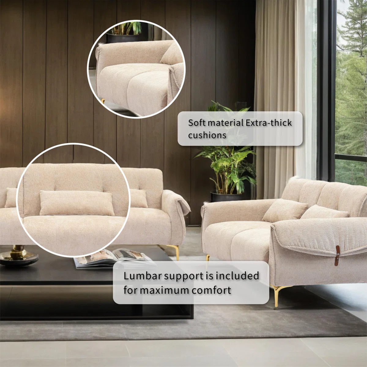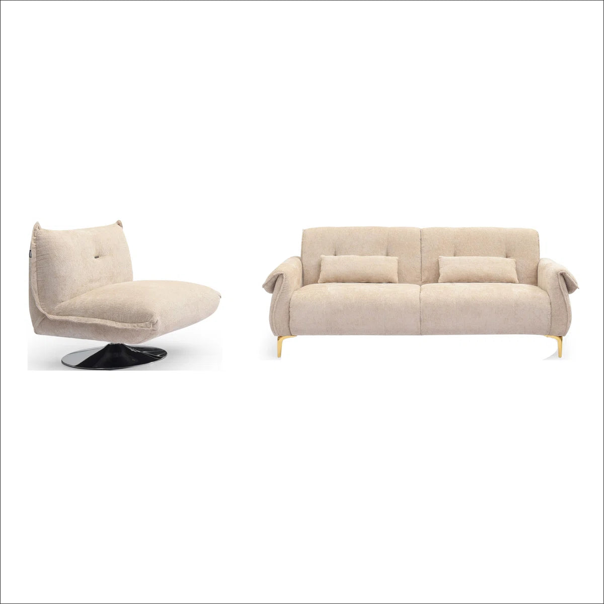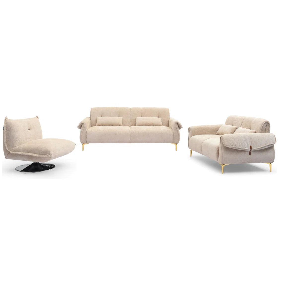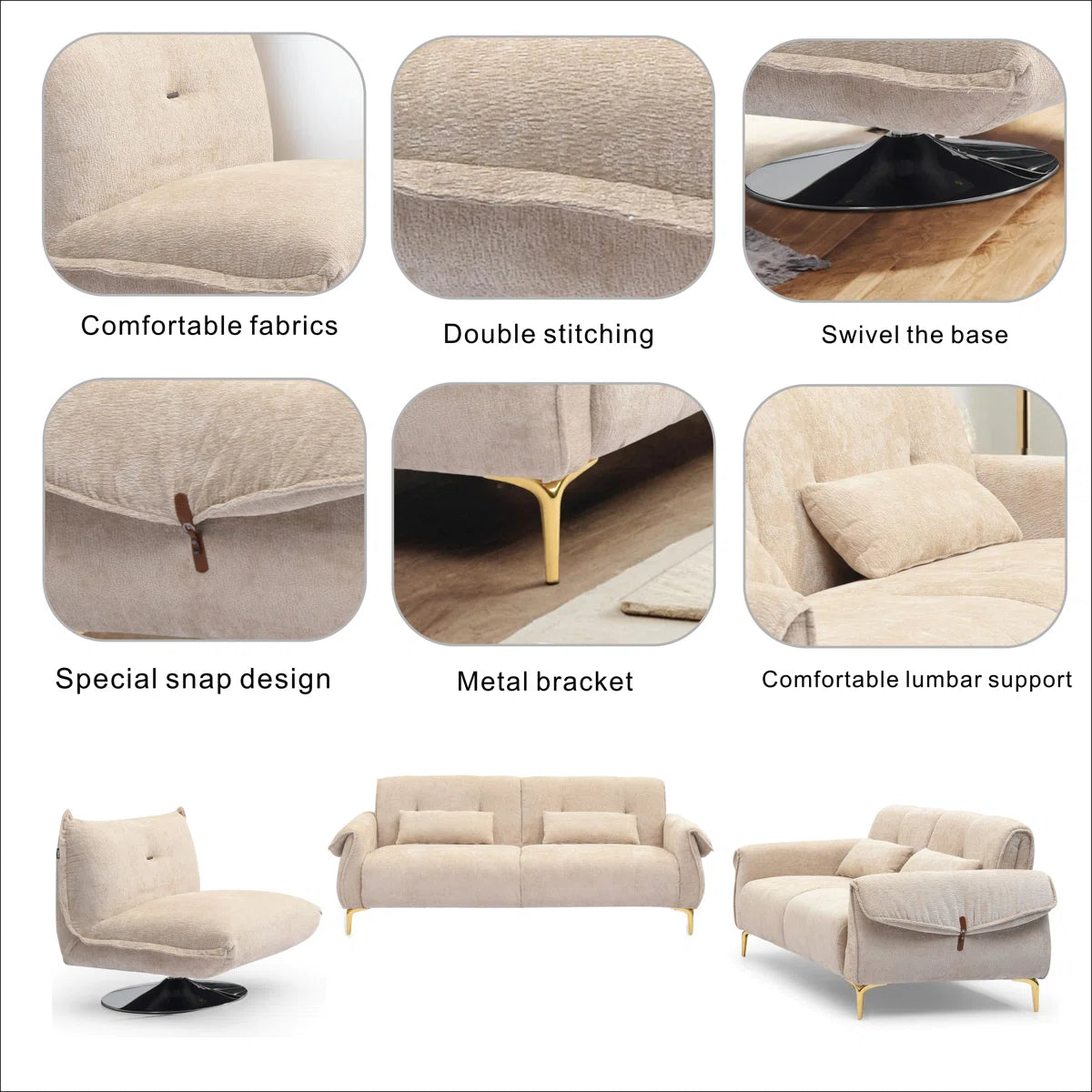 Luxury Sofa Sets: 3-Piece Swivel Chair Sofa Set in Plush Fabric with Toss Pillows