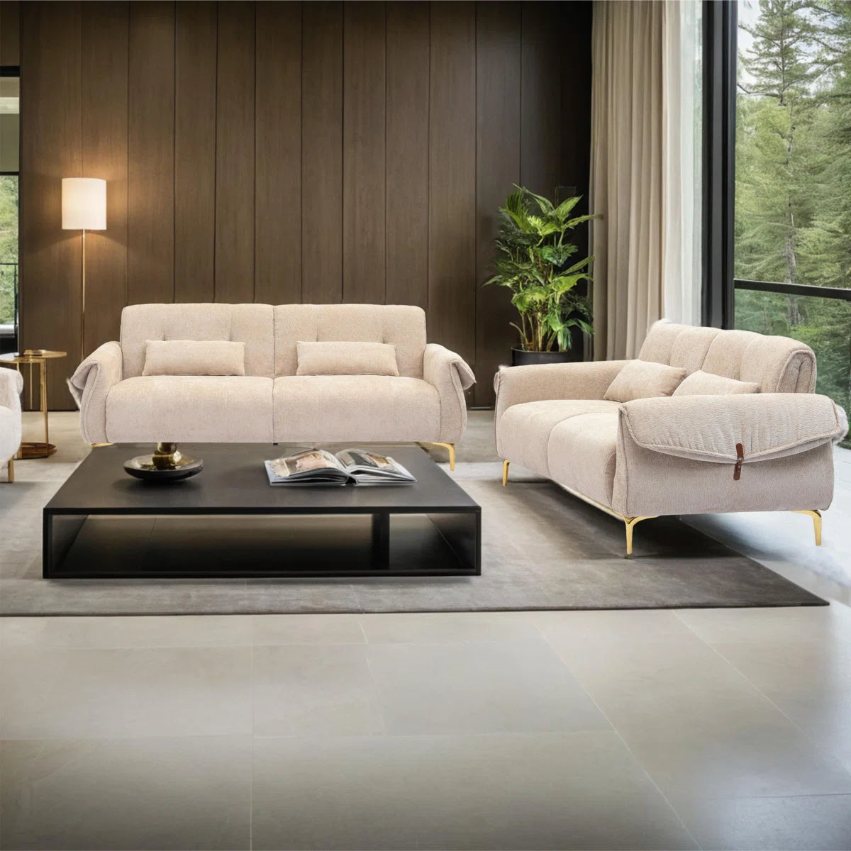 Create a snug and stylish living space with this plush 3-piece sofa set, featuring a three-seater sofa, loveseat, and swivel chair. Wrapped in premium teddy-bear soft fabric, each piece offers ultimate comfort and warmth. The minimalist design, rolled arms, and 5 included toss pillows enhance the charm, while the sturdy eucalyptus wood frame ensures long-lasting support. Perfect for cosy evenings, casual lounging, or chic family gatherings.