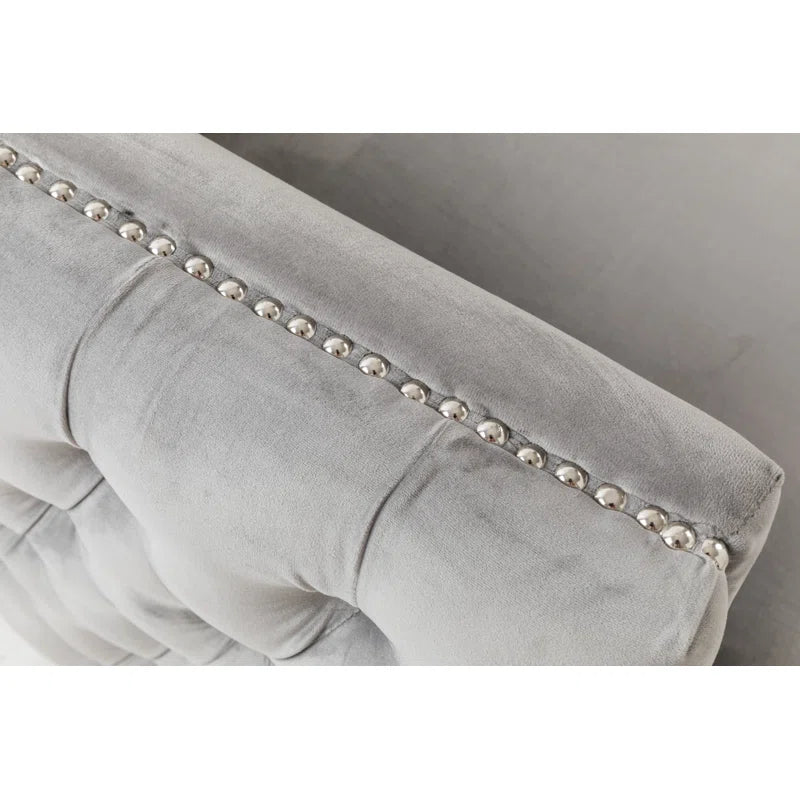 • Luxurious velvet upholstery with button tufting and nailhead trim
