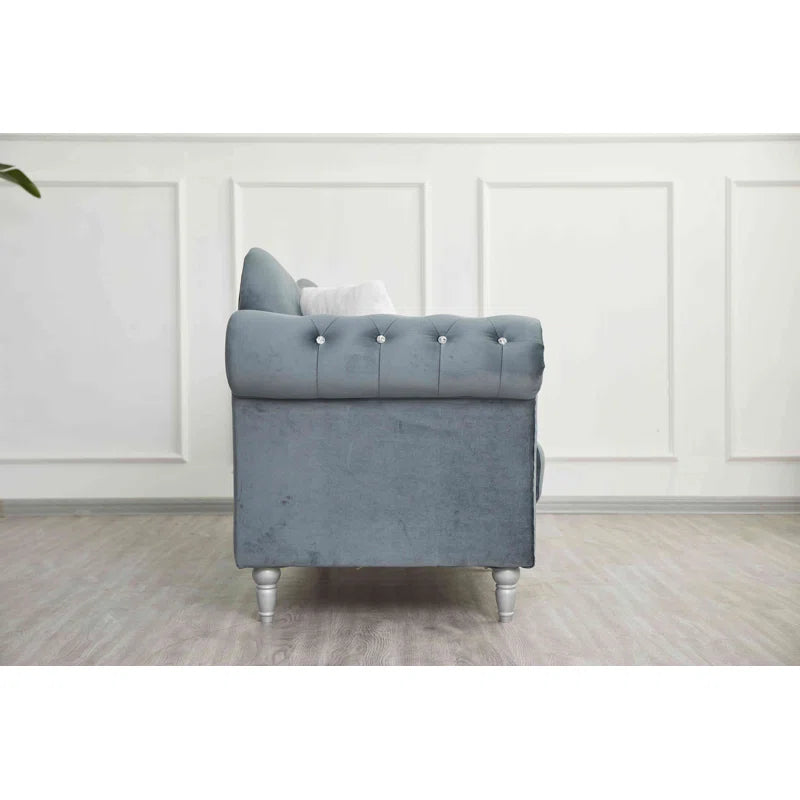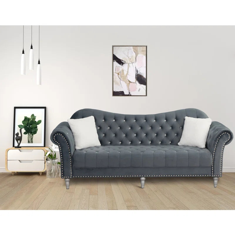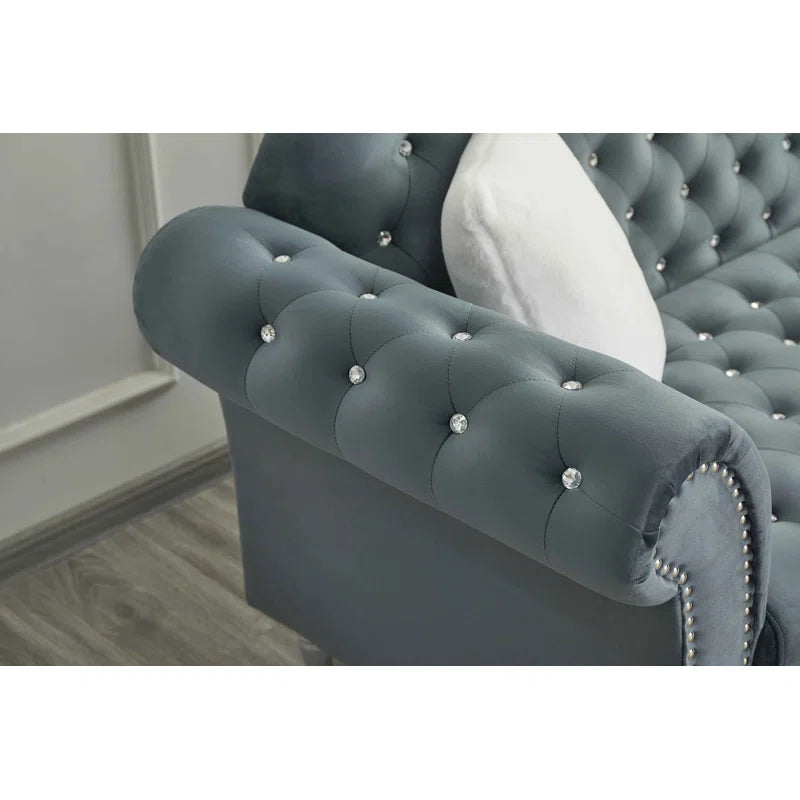 Luxury Sofa Sets: Chesterfield-Style Velvet Sofa & Loveseat Set with Nailhead Trim and Rolled Arms