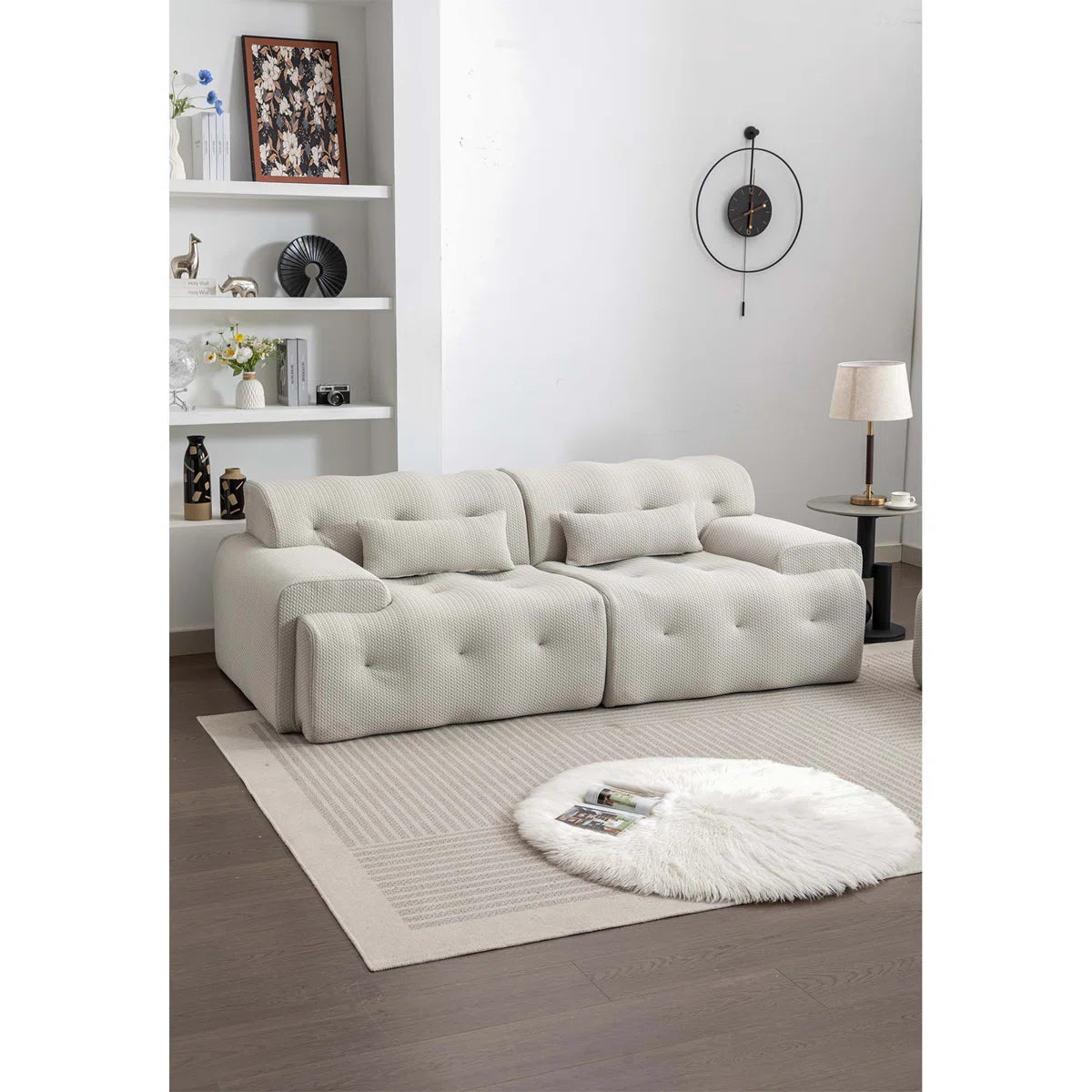 Elevate your living space with this elegant 2-piece sofa set featuring a sofa and loveseat. Designed with clean lines, square arms, and tight tufted backs, this set brings a refined yet cosy vibe to your home. Upholstered in soft polyester fabric and complete with 3 toss pillows, it's ideal for both style and relaxation in any modern living room.