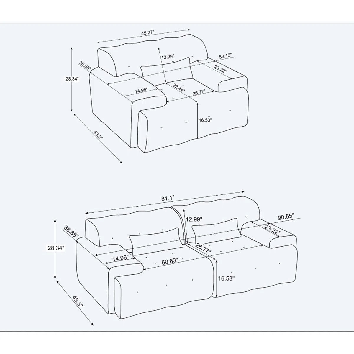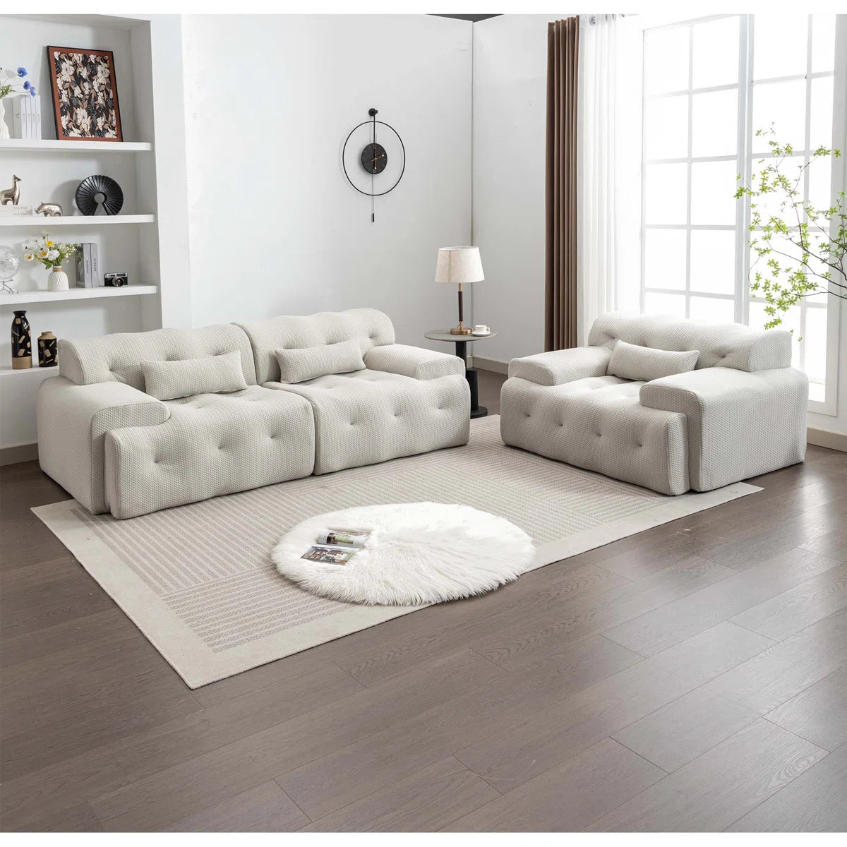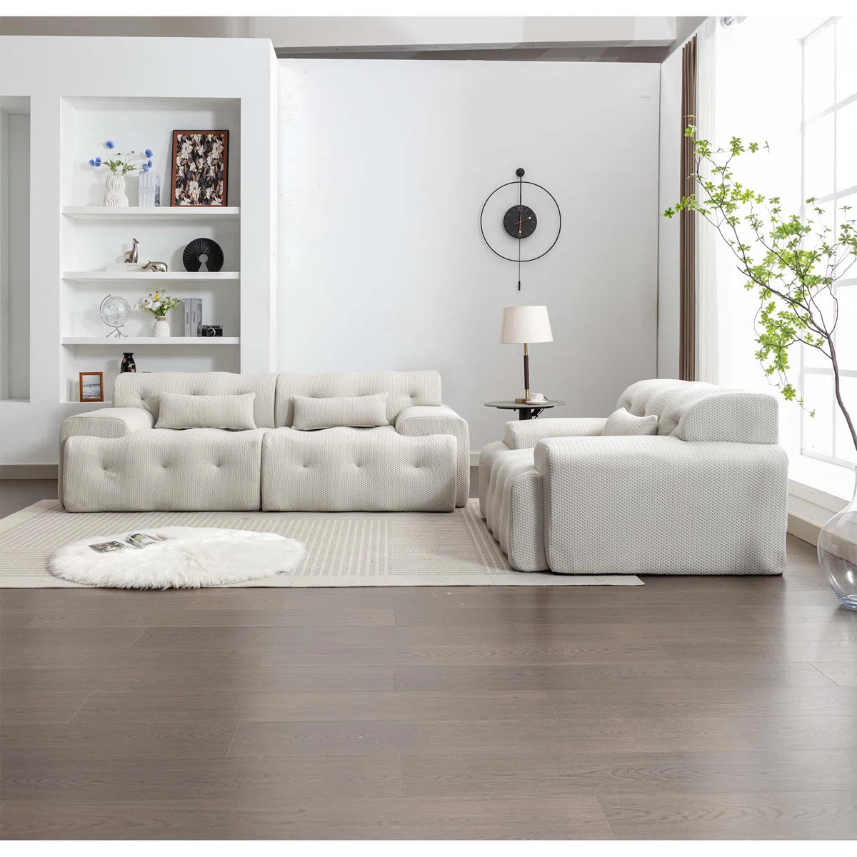 Luxury Sofa Sets: Modern 2-Piece Sofa and Loveseat Set with Tufted Design and Pillows