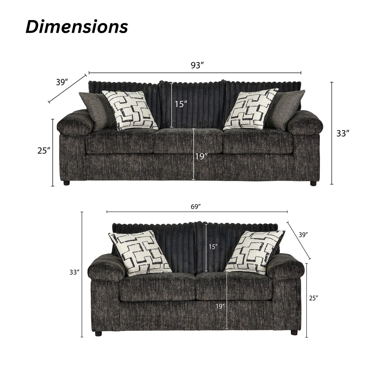 • Loveseat: 33'' H X 69'' W X 39'' D