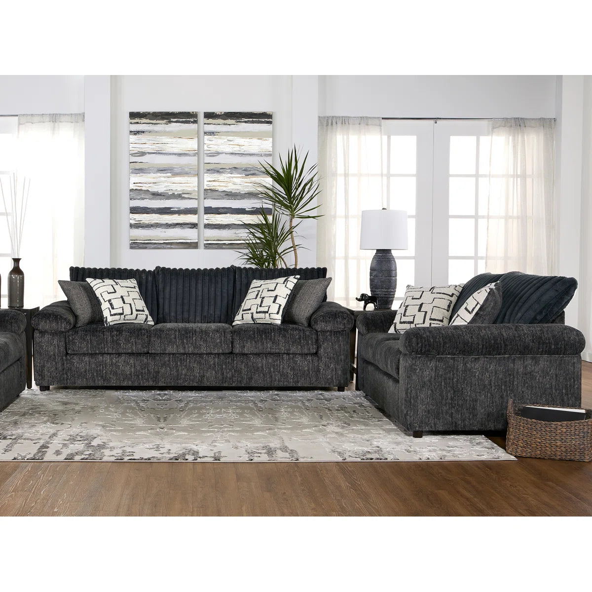 • Includes 1 sofa and 1 loveseat with thick foam padding for superior lounging.