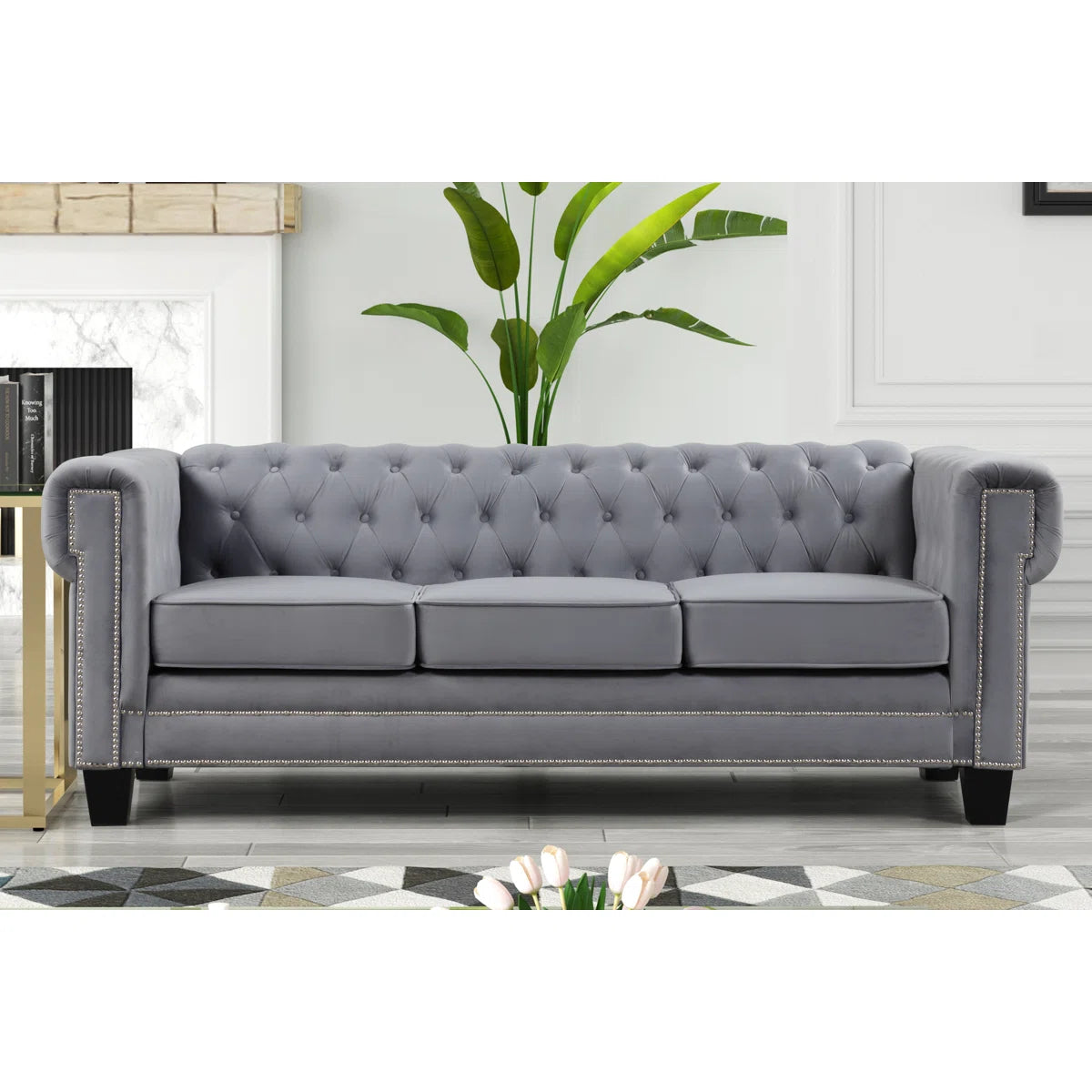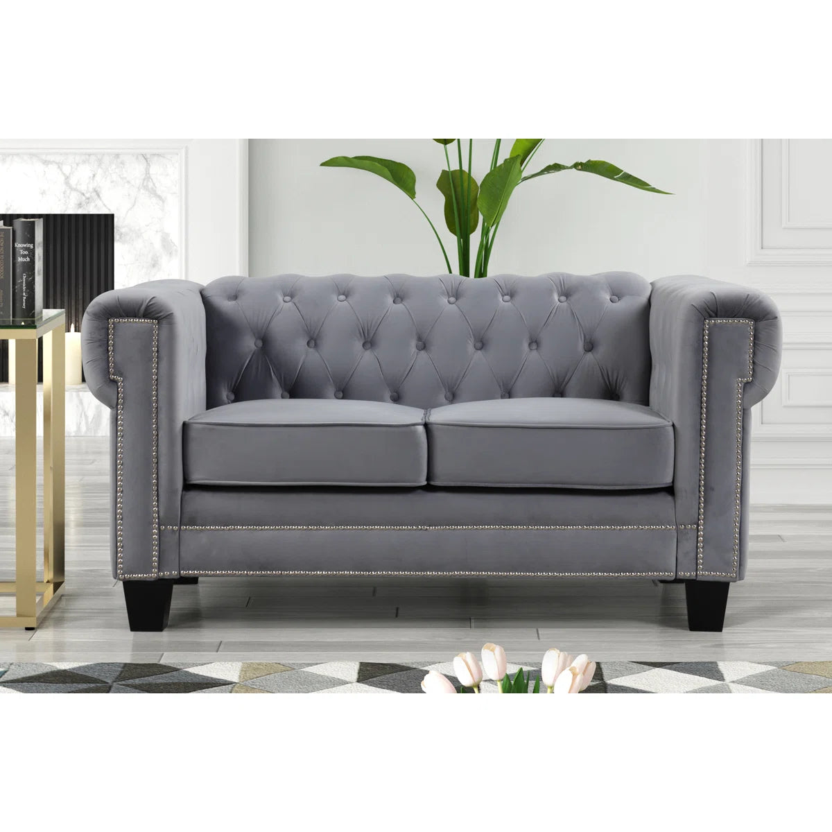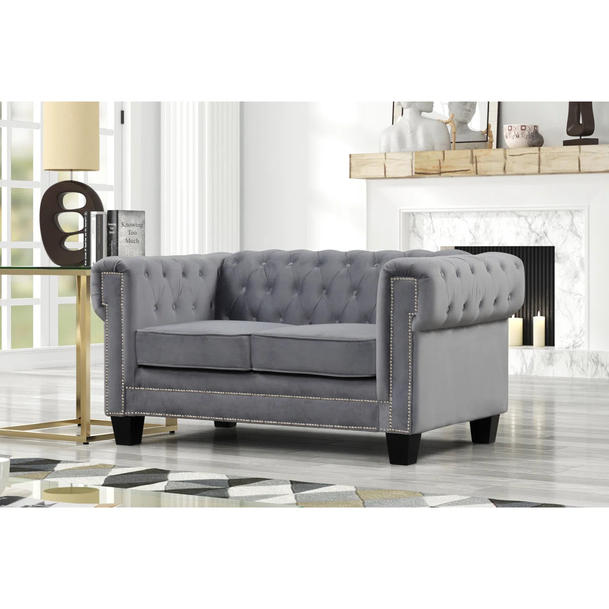 Upgrade your home with this premium Red Barrel Studio® velvet living room set. It includes a three-seater sofa, a two-seater loveseat, and one accent armchair. With soft velvet fabric, button-tufted inner back and sides, and black wood legs, this set blends luxury and modern aesthetics. Designed for both contemporary apartments and classic interiors, it features hidden zippers on cushions for easy cleaning and solid wood legs that resist floor scratches.