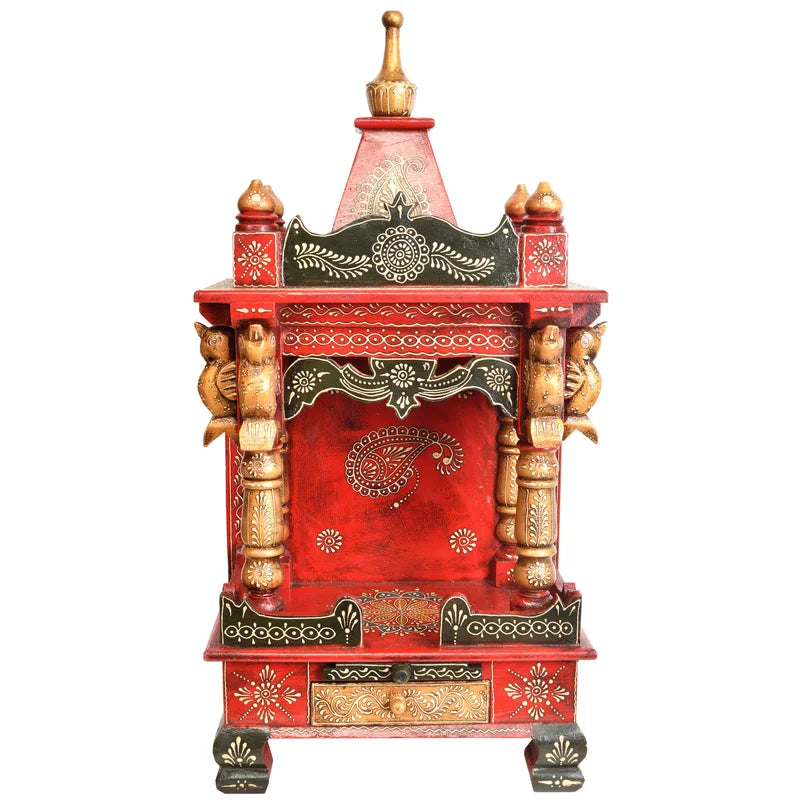 The designer wooden temple features an elegant design that enhances the ambiance of any space. Its intricate details and refined craftsmanship make it a beautiful addition to your home.