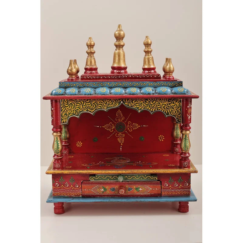 - 19" Hand painted Wood Temple - Wooden Puja Temple- Handmade Art.