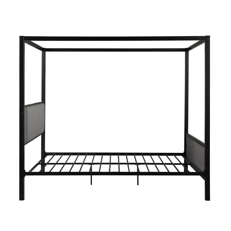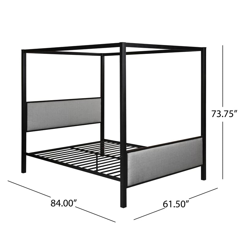 This Queen Canopy Bed offers a dazzling focal point for your room, featuring a minimalistic structure in neutral and a sturdy metal structure. With multiple support slats that cut out the need for a box spring, this set offers timeless elegance for your home décor while providing you with maximum support.