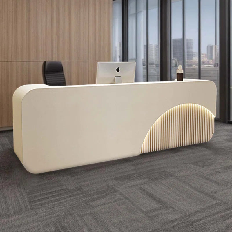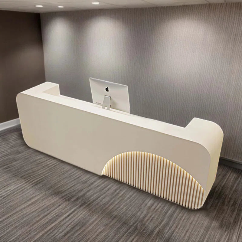 Make a positive first impression on clients, customers and guests with professional, stylish products. This modern reception desk is perfect for offices, reception rooms, shops, hotels and more, and its elegant look will add sparkle to your office space. Ample storage space provides convenient storage for files, documents, and other important office tools, appliances, and resources.