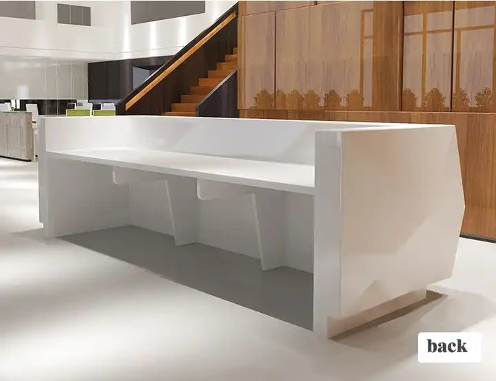 This is a modern reception desk that follows a minimalist design to suit any style of interior decoration you want. Made of high-quality MDF, it is structurally stable, durable, scratch-resistant, and easy to clean and maintain.