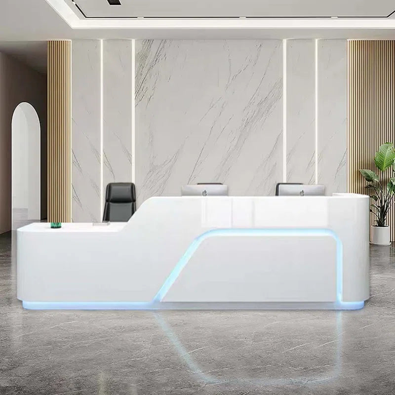 This laminate counter reception desk combines functionality with modern style. Its sleek surface provides ample workspace for receptionists, while the durable construction ensures it withstands daily use, making it a great addition to any office.