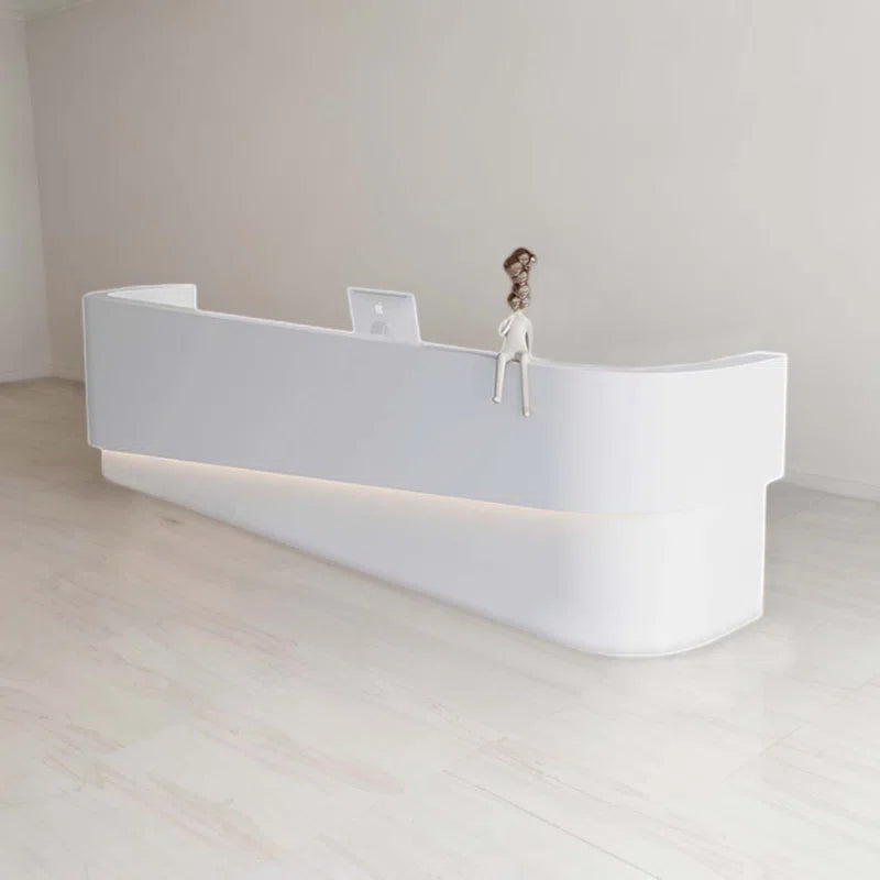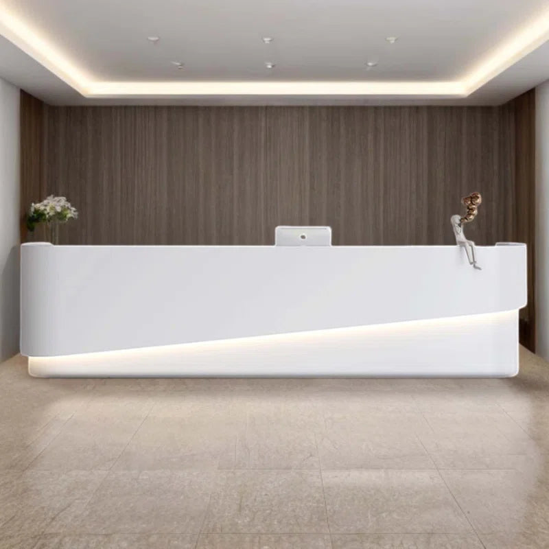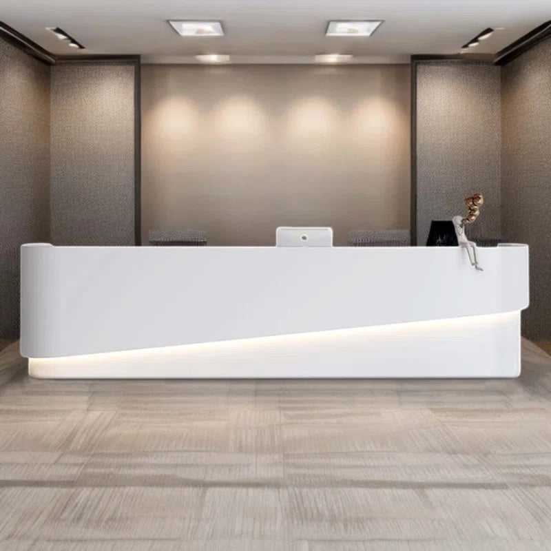 Make a positive first impression on clients, customers and guests with professional, stylish products. This modern reception desk is perfect for offices, reception rooms, shops, hotels and more, and its elegant look will add sparkle to your office space. Ample storage space provides convenient storage for files, documents, and other important office tools, appliances, and resources.
