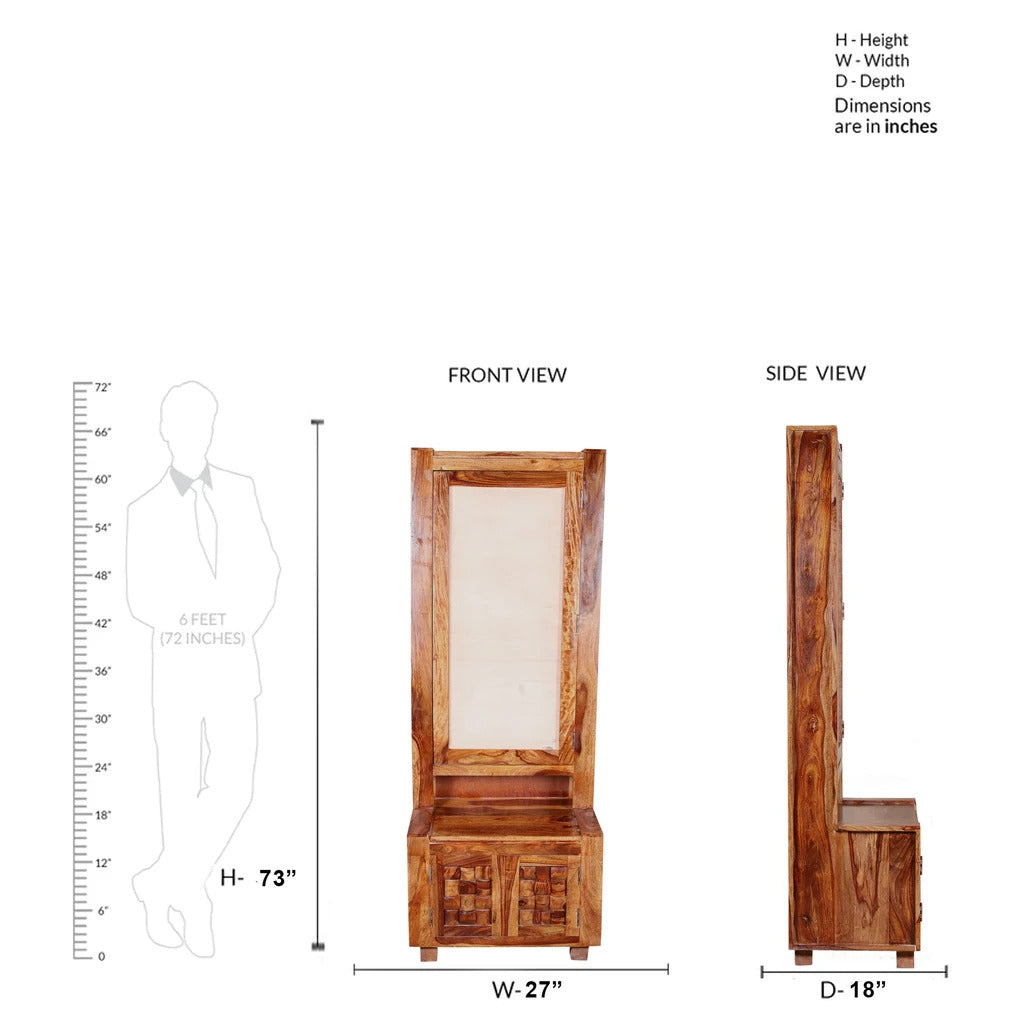 Sheesham Furniture :- Solid Wood Two Door Dressing Mirror with Hidden Storage