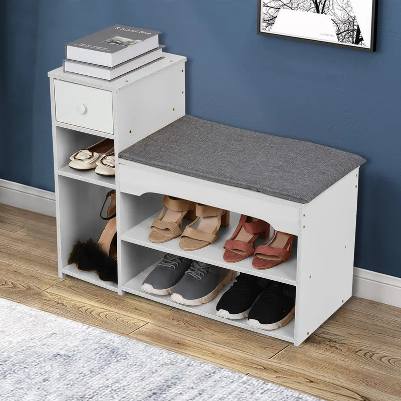 This shoe rack storage stool is fashionable and useful at the same time. The cushioned top makes for comfortable seating, and the built-in shoe rack keeps my doorway organized. A wonderful addition to my house in terms of both design and utility!